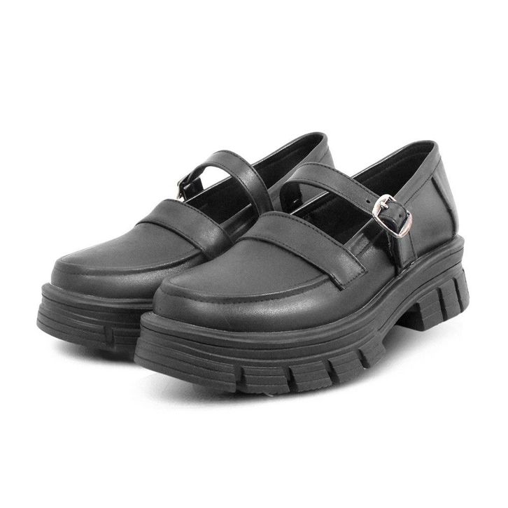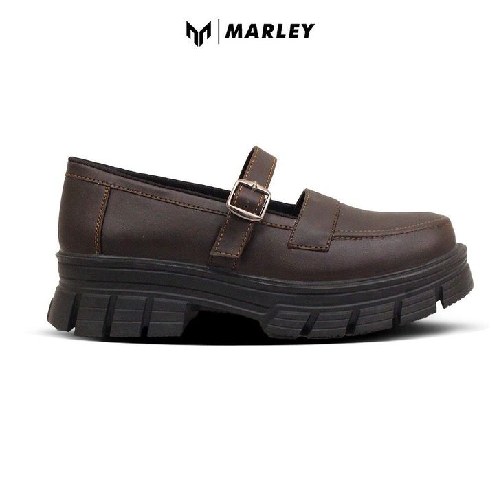 Marley Nayara 107-01 Sepatu Pantofel Docmart Wanita Sepatu Mary Jane Formal Kasual Sintetis Hitam