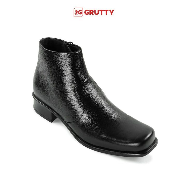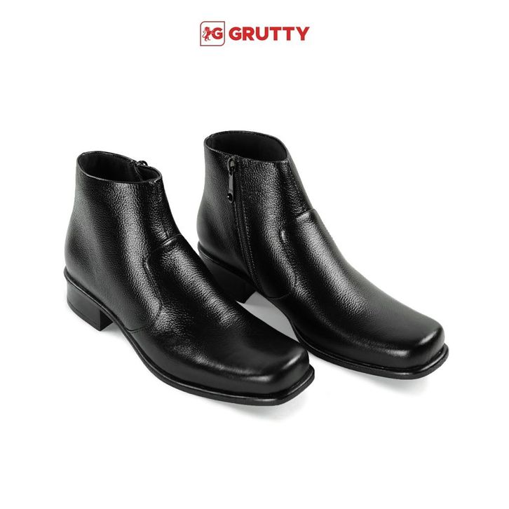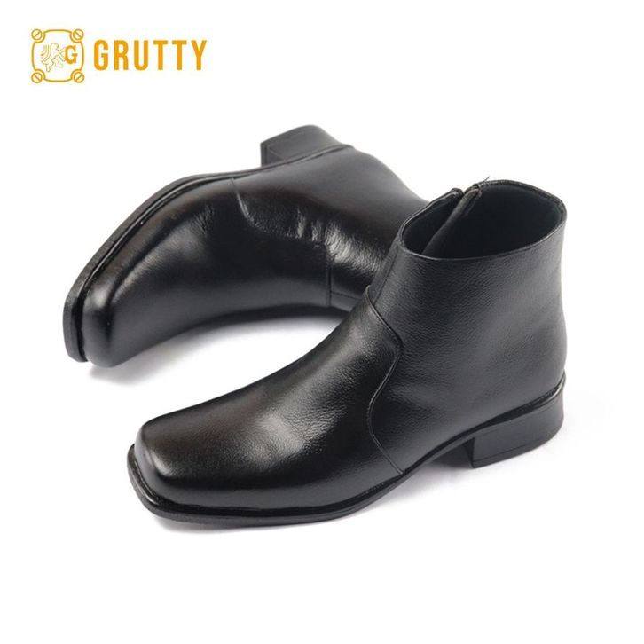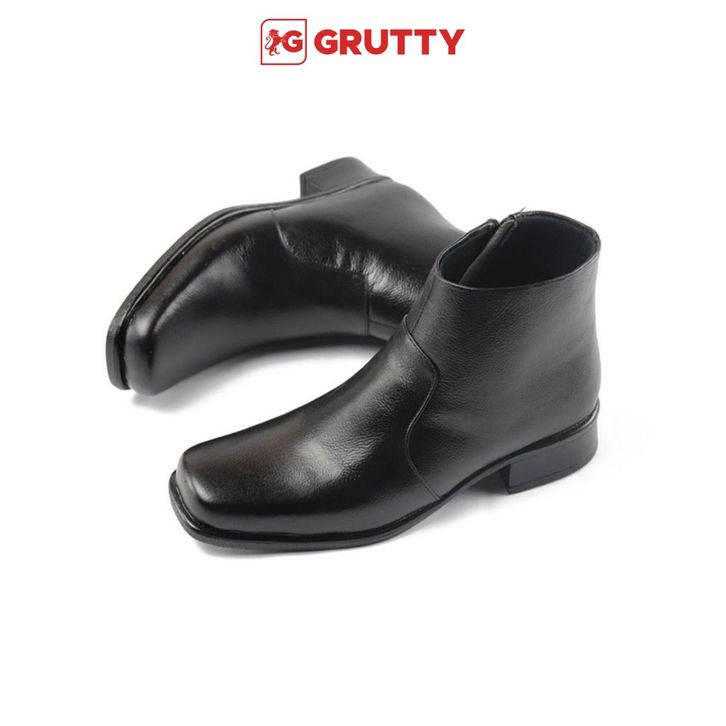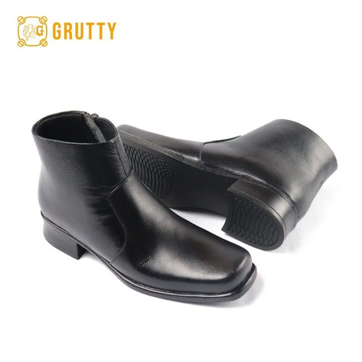 Sepatu Boot Wanita Kulit Asli Boots Premium Hak 3cm Grutty IN014 Hitam Pantofel Boots Tanpa Tali