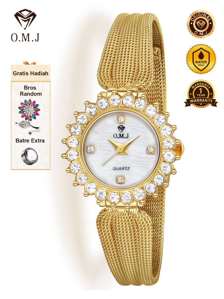 O.M.J G090 Jam Tangan Wanita Emas Baja Elegan Mewah Asli Seri Vintage Gold Watches