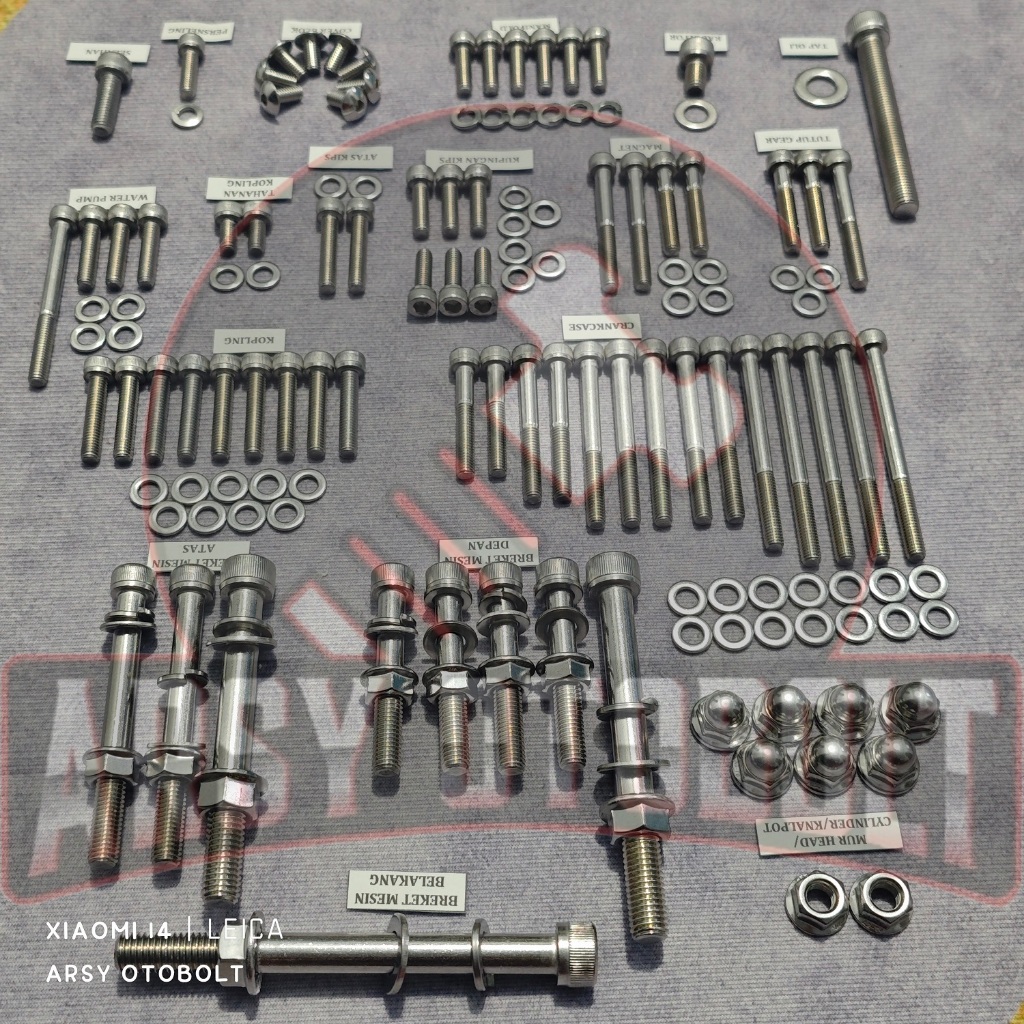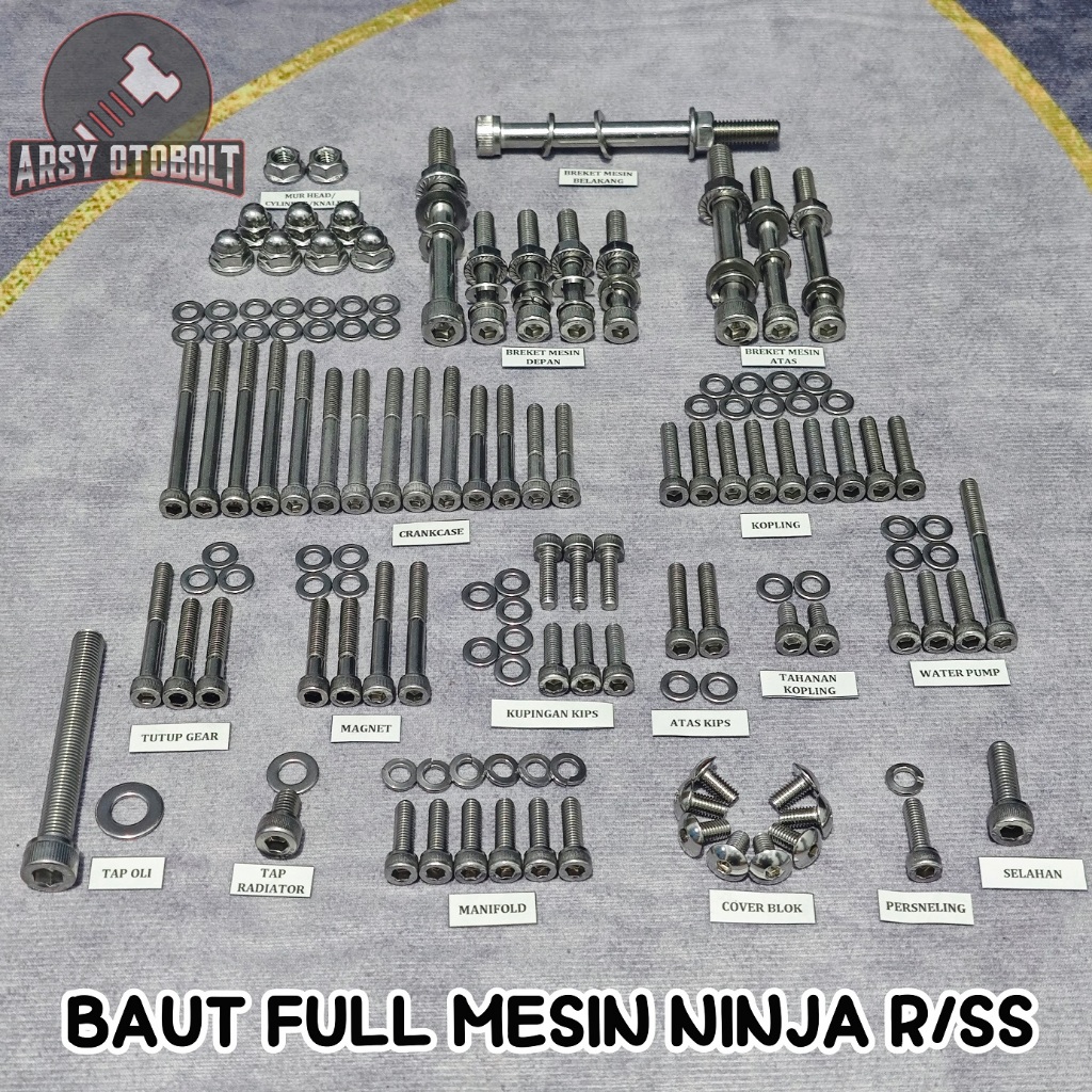 Baut Full Mesin Ninja 150 R/SS Stainless 304 Tahan Karat