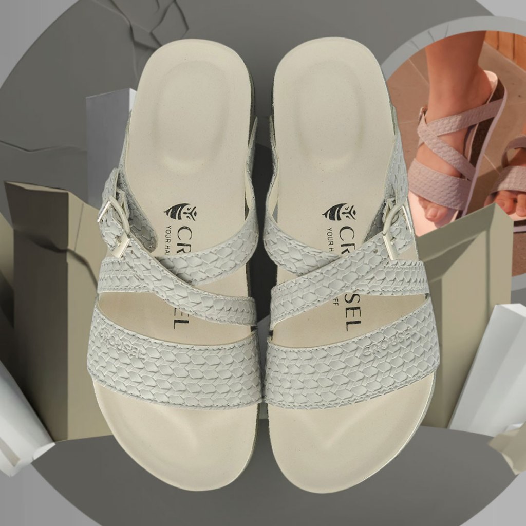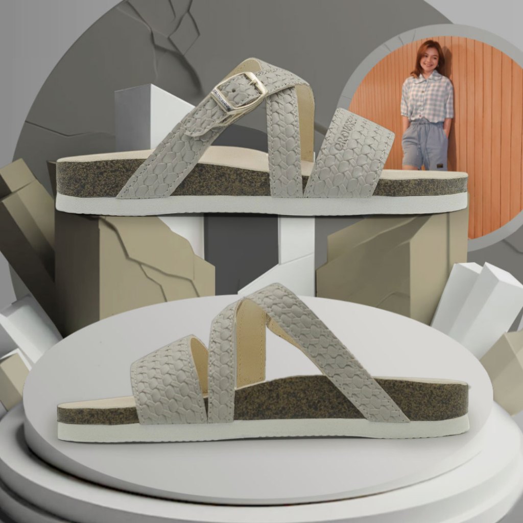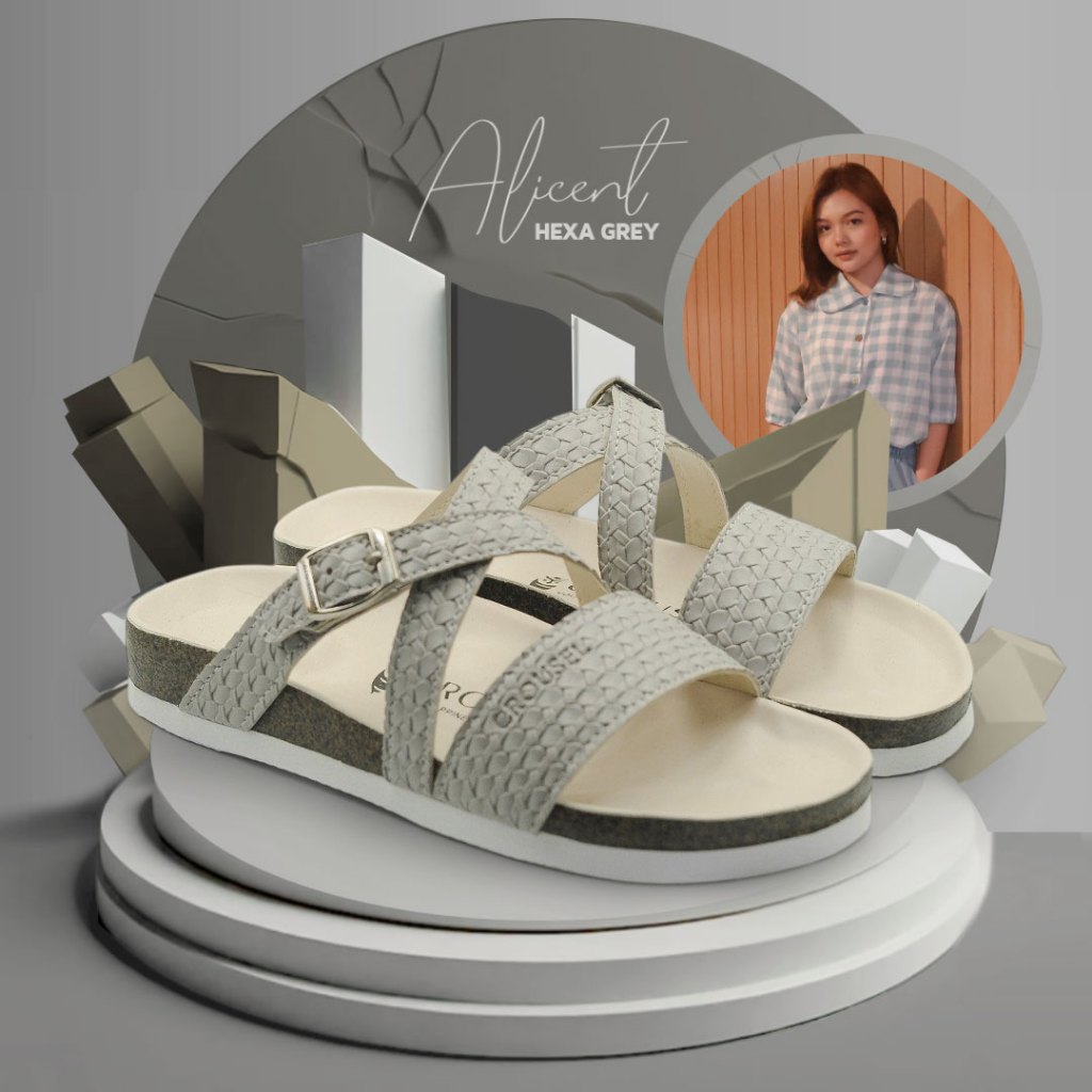 [Mall] Sandal Wanita Cewek Sendal Flat Dewasa Elegan Korea Kekinian Murah Original Slide Hexa Grey
