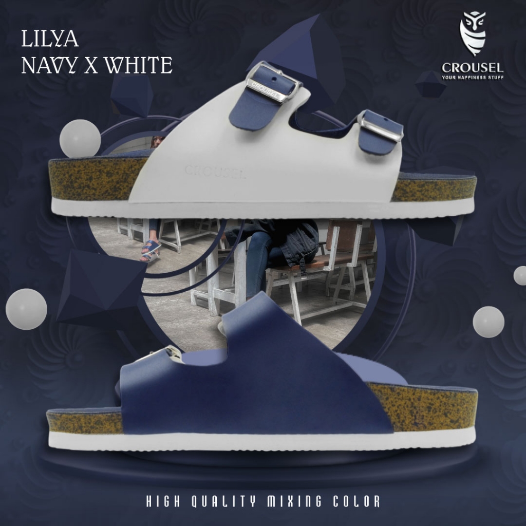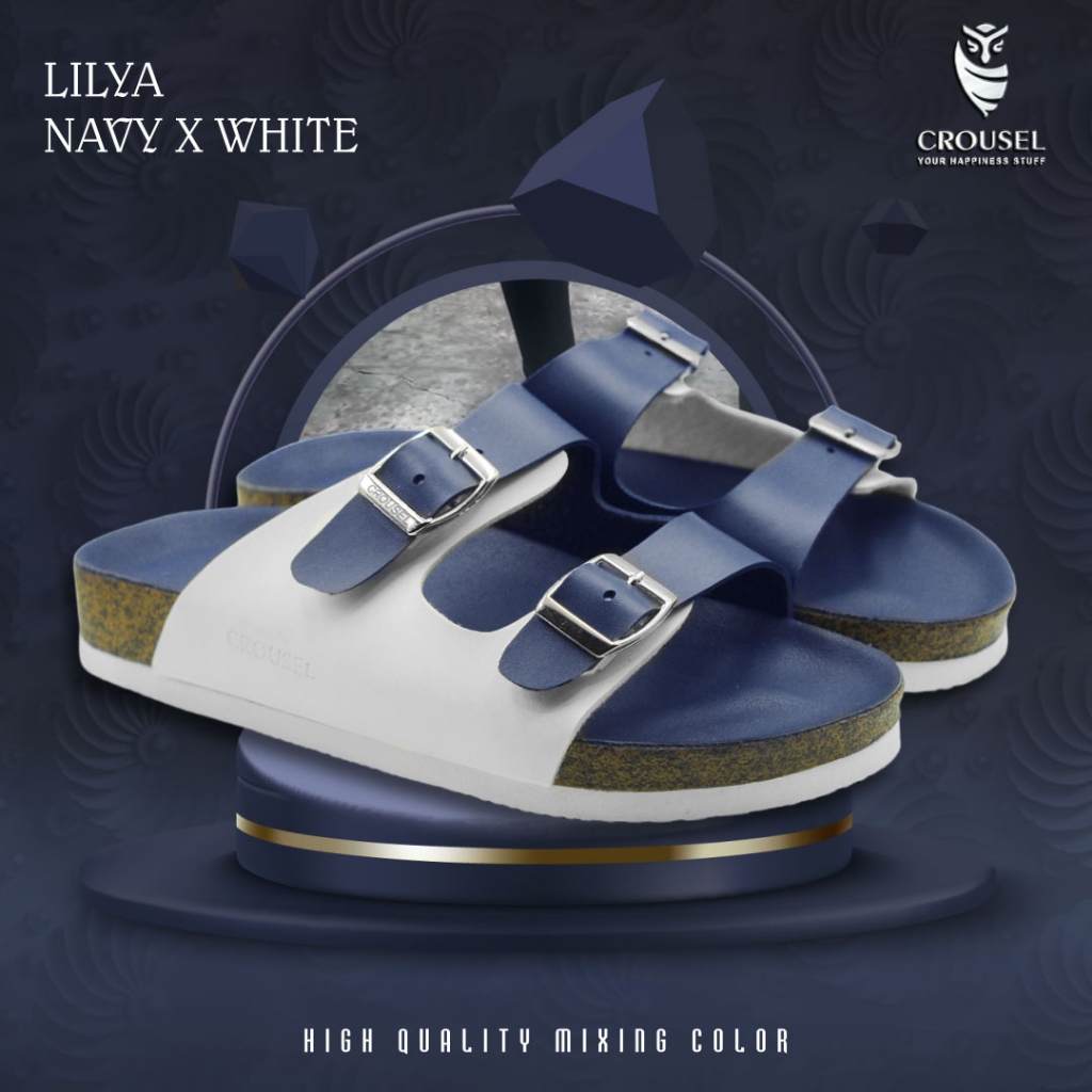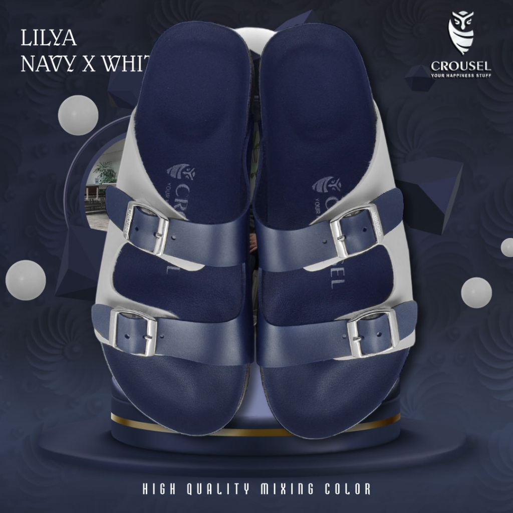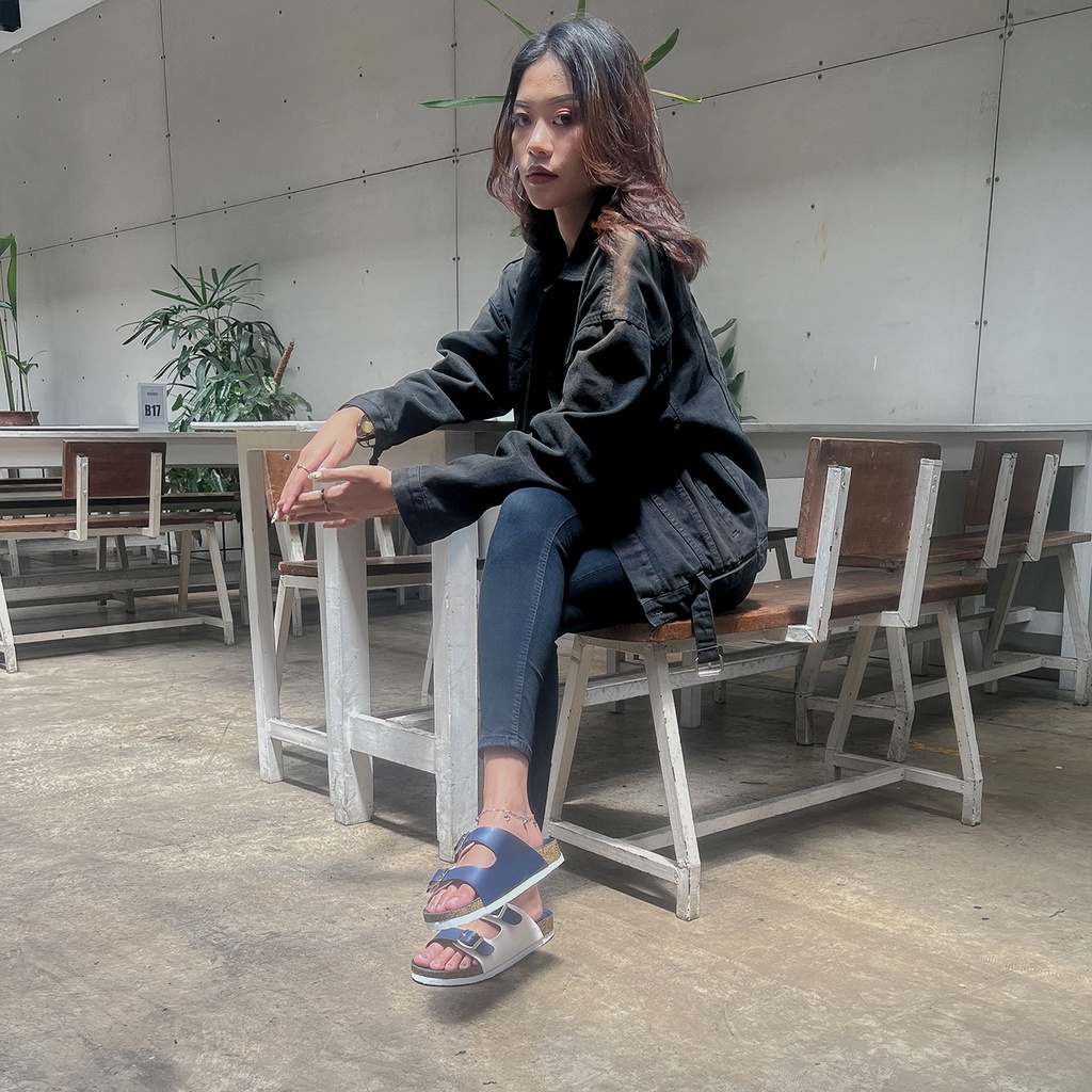 [Mall] Sandal Wanita Cewek Sendal Flat Dewasa Elegan Korea Kekinian Murah Original SlideNavy x White