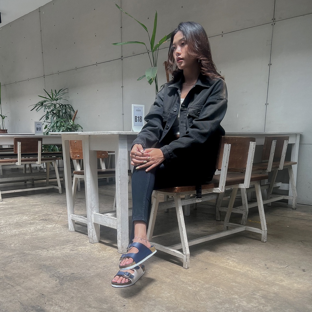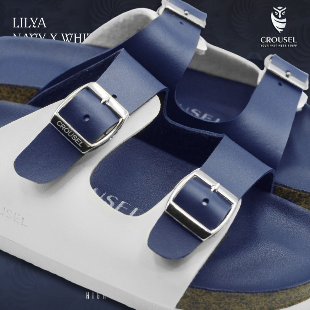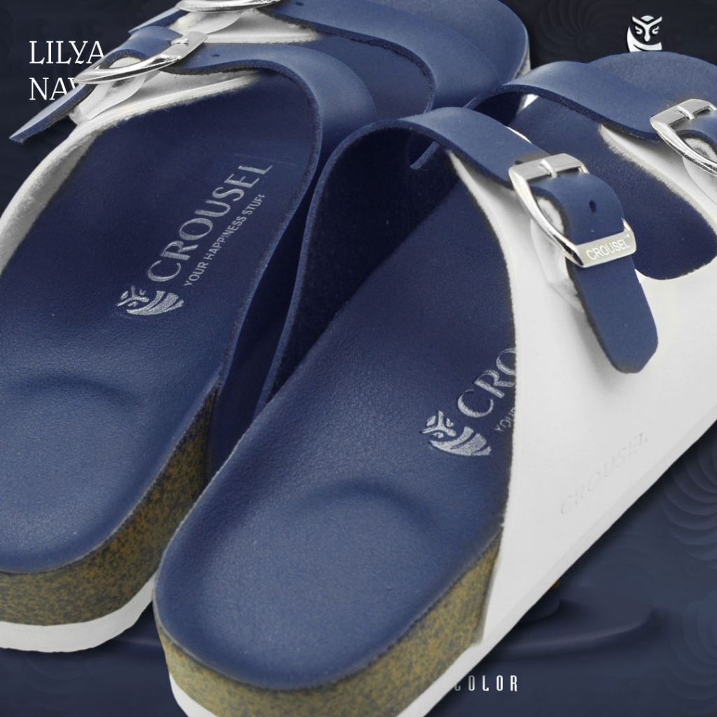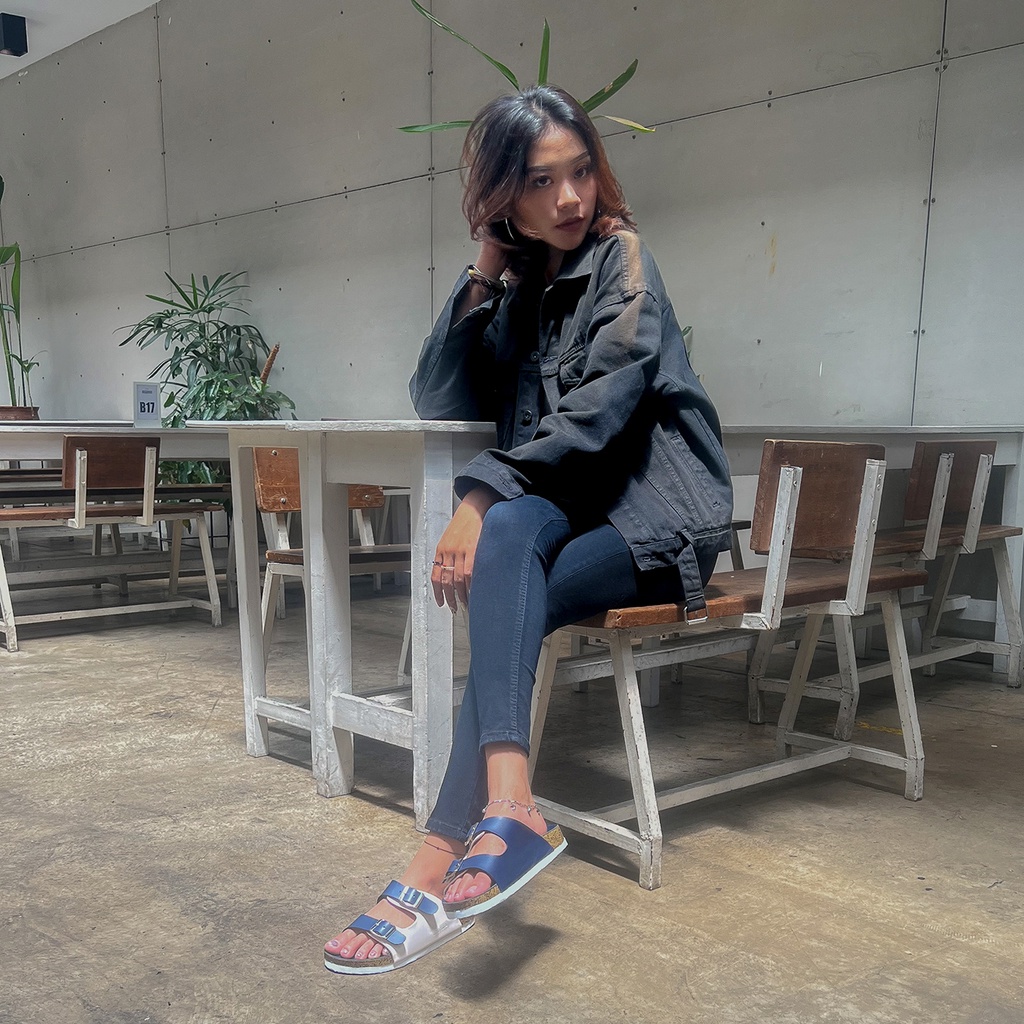 [Mall] Sandal Wanita Cewek Sendal Flat Dewasa Elegan Korea Kekinian Murah Original SlideNavy x White