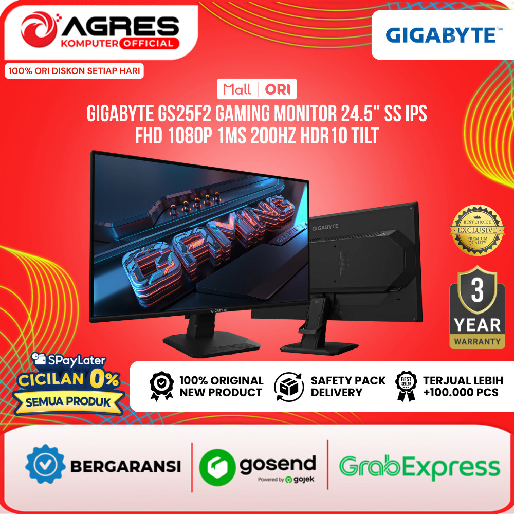 [Mall] GIGABYTE GAMING MONITOR 25 INCH SS IPS FHD 1080P 1MS 200HZ GS25F2 HDR10 TILT 3Y