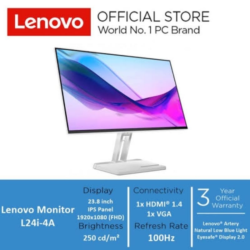 [Mall] MONITOR LED LENOVO L24I-4A IPS 100HZ SPEAKER FREESYNC BEZELESS FHD EYECARE VGA | L24I 4A
