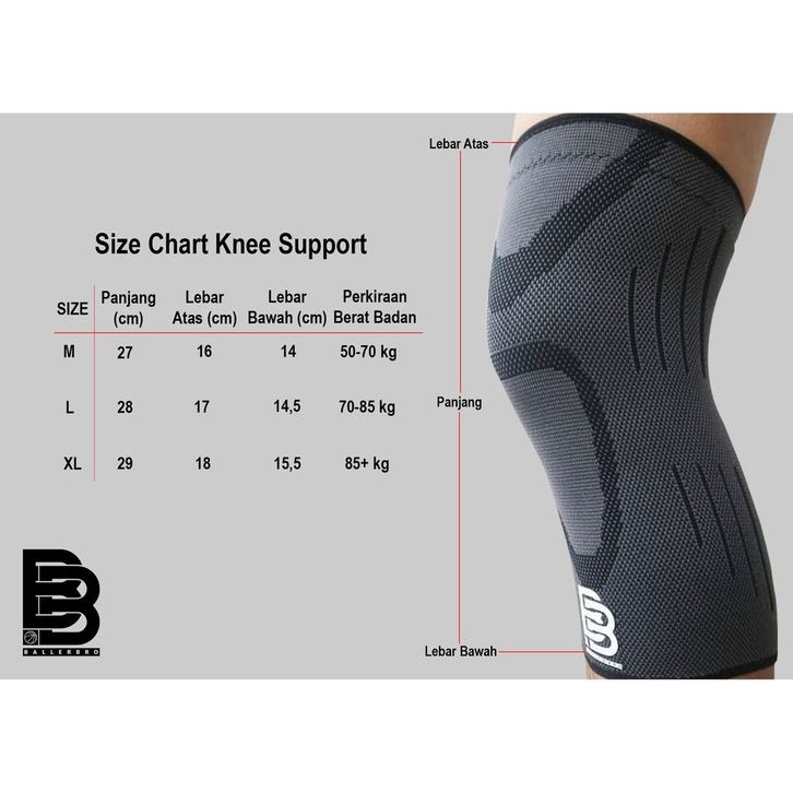 Ballerbro Knee Compression Brace Elastis Ukuran M-XL