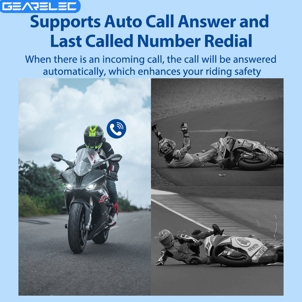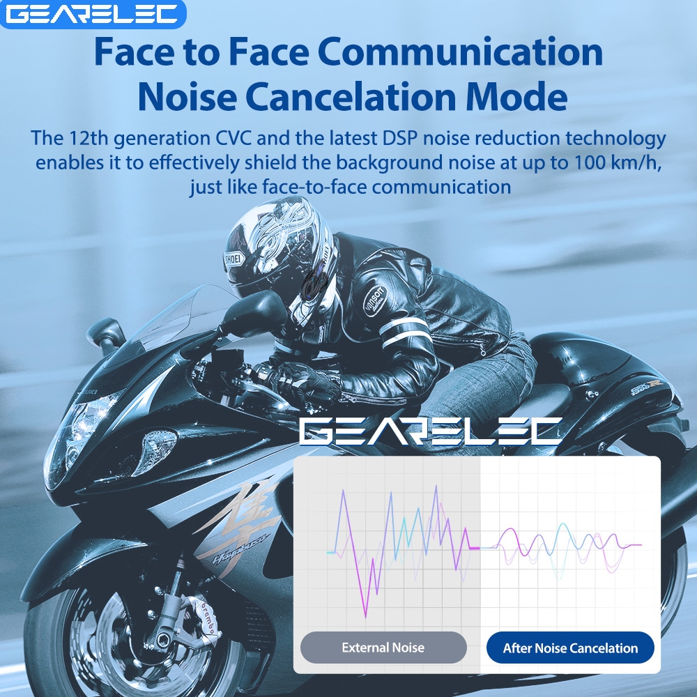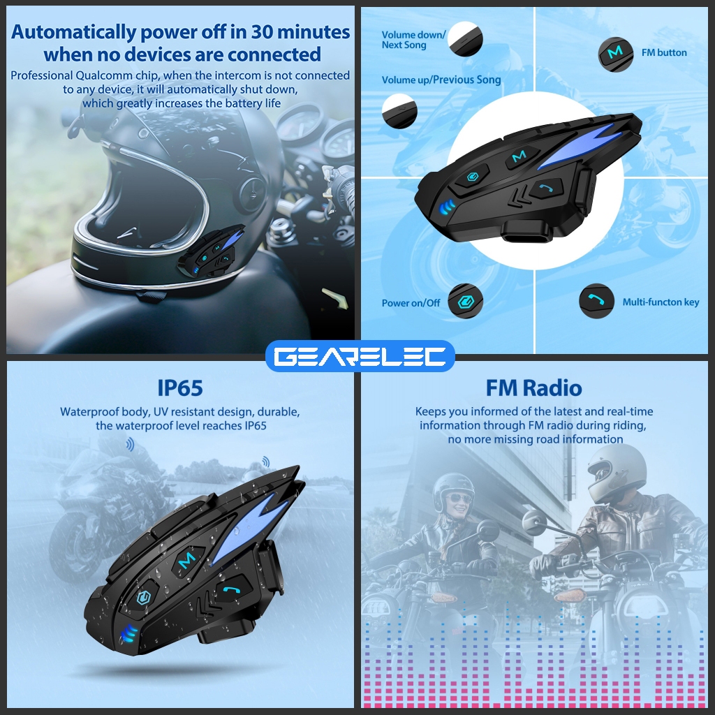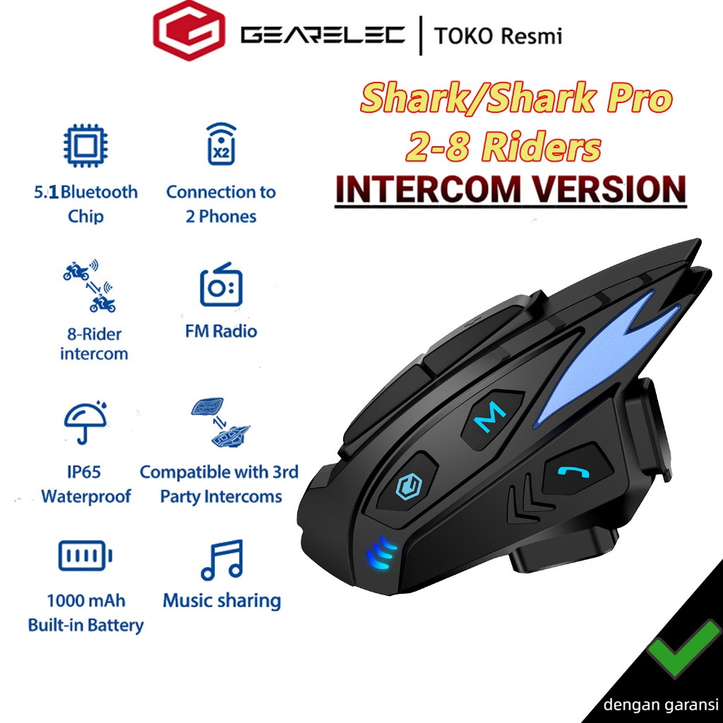 GEARELEC shark pro BT5.1 Helm Bluetooth Intercom Headset 2-8 riders IP65 Waterproof Music Sharing