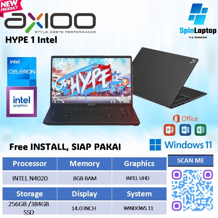 [Mall] LAPTOP MURAH AXIOO HYPE 1 14 INTEL N4020 8GB 384GB SSD 14" HD SLIM WIN11 HOME ORIGINAL