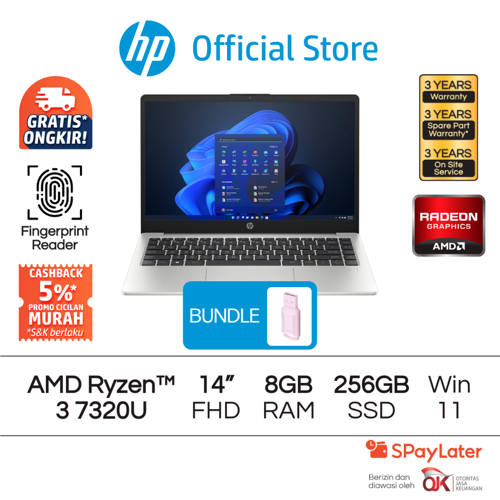 [Mall] LAPTOP HP 245 G10 RYZEN 3 7300U RADEON 8GB RAM 256GB SSD WINDOWS 11 14 INCH AMD GARANSI 3 TAHUN PROMO MURAH GRATIS ONGKIR OFFICIAL NON SECOND