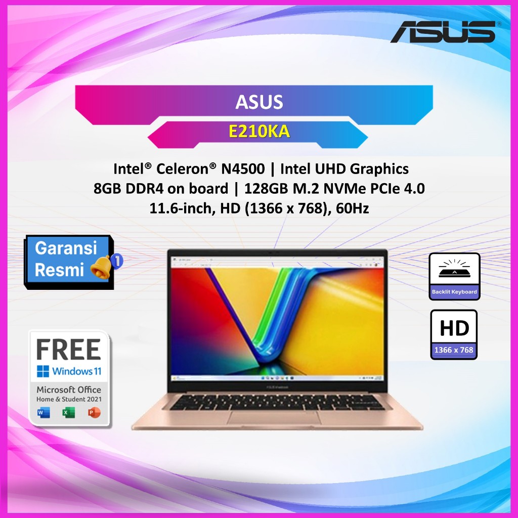 [Mall] ASUS E210KA N4500 8GB 128GB W11+OHS+O365 11.6" ROSE PINK/ BLUE /BLACK