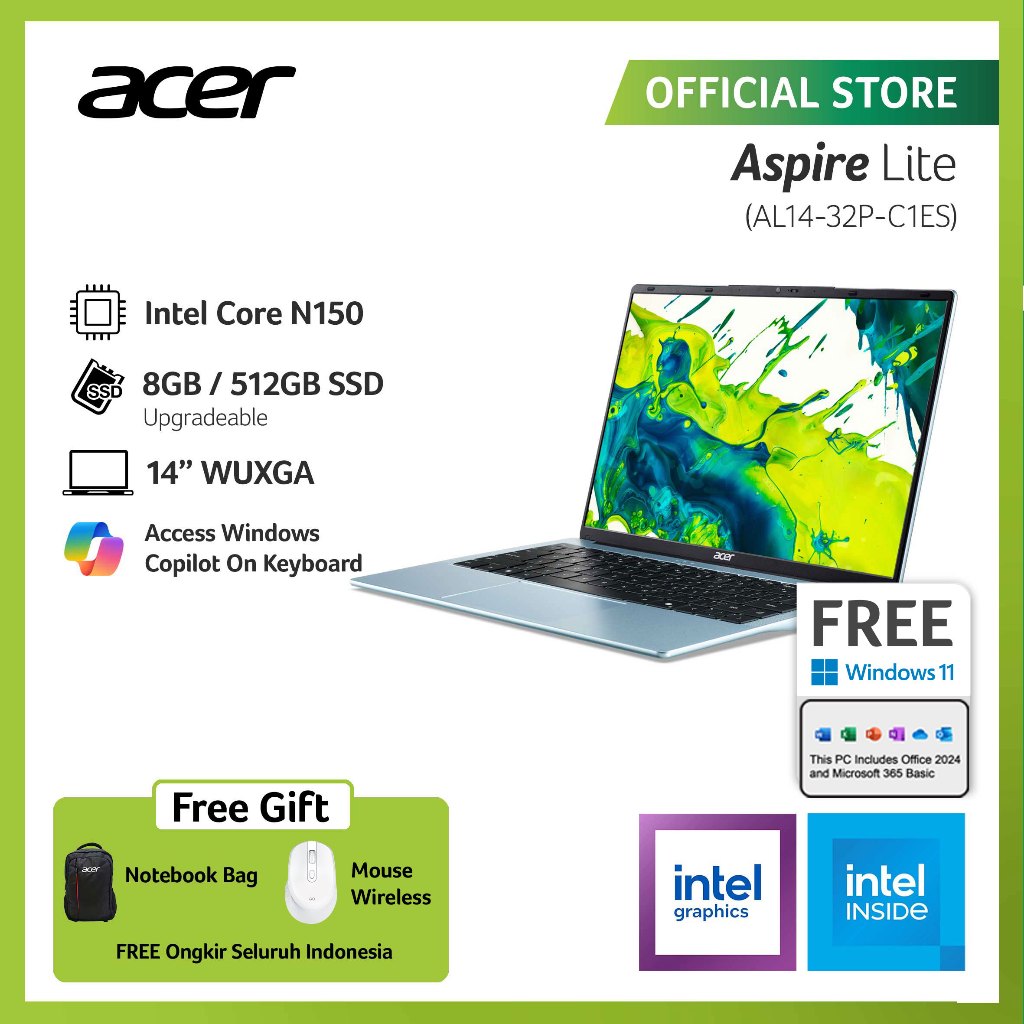 [Mall] (FREE MOUSE WIRELESS) ACER LAPTOP ASPIRE LITE AL14-32P-C1ES 14" WUXGA INTEL N150 RAM 8GB STORAGE 512GB SSD INTEL GRAPHICS WINDOWS 11