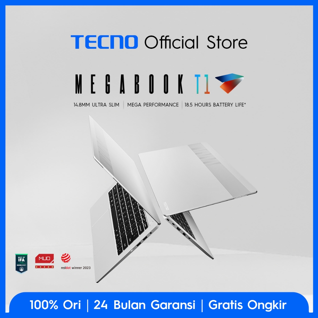 [Mall] TECNO MEGABOOK T1 14 13TH - 16GB+512GB, INTEL CORE I5-13420H, 100 PERSENSRGB DISPLAY, 75WH BATTERY, 65W TYPE-C GAN PD FAST CHARGE , DTS X ULTRA IMMERSIVE SOUND, GARANSI 24 BULAN