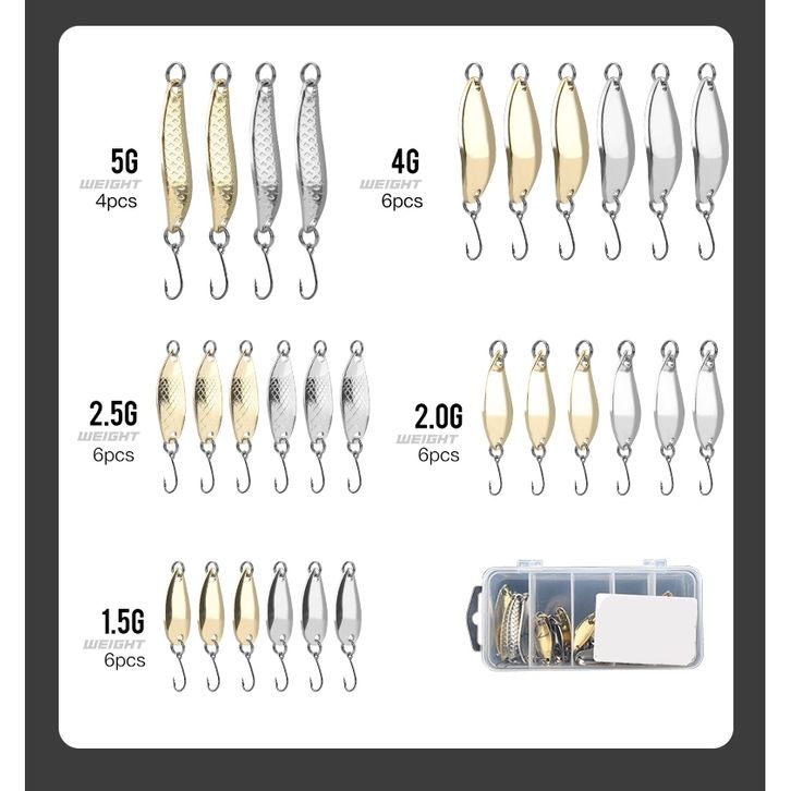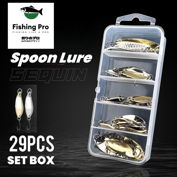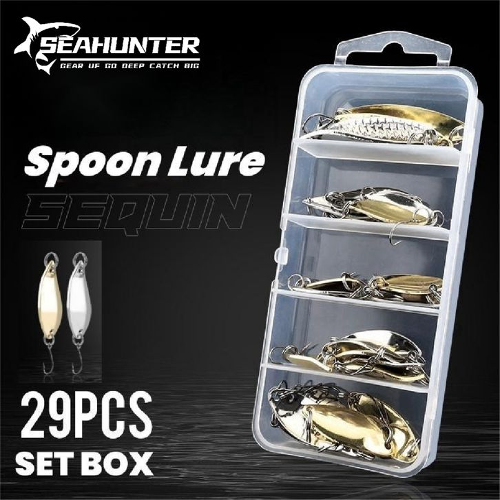 PROMO SEAHUNTER UMPAN PANCING BAIT METAL SPOON 1 SET 29PCS/SET BOX KOTAK, UNTUK CASTING, UMPAN SPOON SEQUINS WITH HOOK (