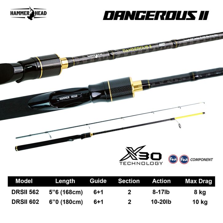 PROMO HAMMER HEAD JORAN PANCING SPINNING DANGEROUS II 168 - 180CM MID JOINT HI-CARBON X30 SUPER STRONG FUJI MATERIAL JOR