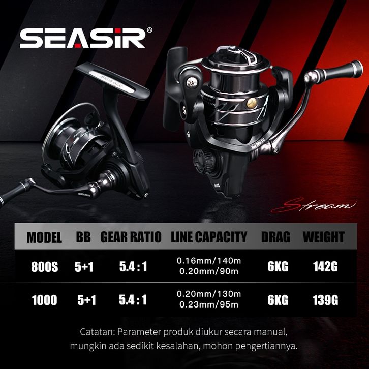 PROMO [OFFICIAL] SEASIR STREAM POWER HANDLE REEL PANCING 800S-1000 SPINNING REEL 139G ULTRALIGHT CARBON WASHERS 6KG MAX