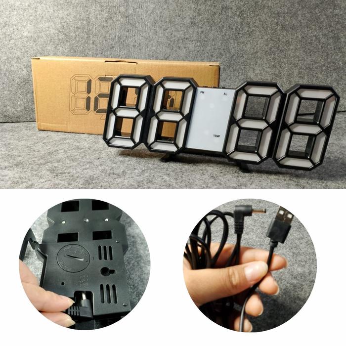 JD-01 PUTIH & HITAM SOHA Jam 3D Digital Dinding Meja Tembok Lampu LED Light clock Wall Dekorasi Minimalis Modern & unik