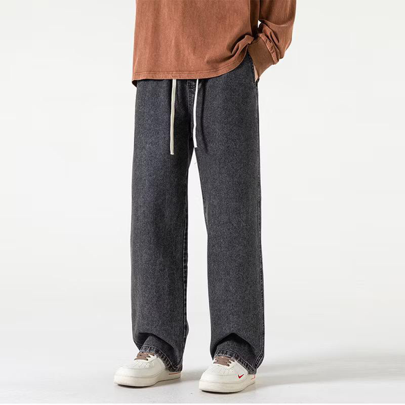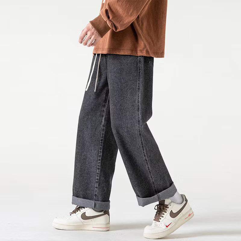 Celana jeans pria baggy pants tali celana pria korean style celana kulot pria jeans pinggang karet loose straight jeans jumbo celana jins cowok
