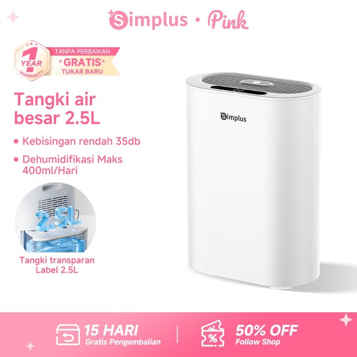 Dehumidifier Simplus Kapasitas 2,5L 380mL/Hari Anti Bising 35dB Untuk Kamar Lemari Kamar Mandi Penyaring Udara Ruangan