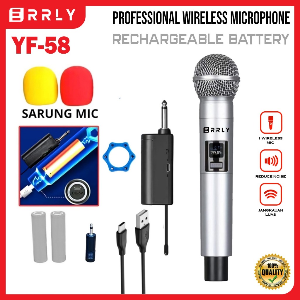 MIC ERRLY Mic Karaoke Wireless Microphone karaoke YF58 YF58S with Receiver System LED Display Mic Karaoke Genggam