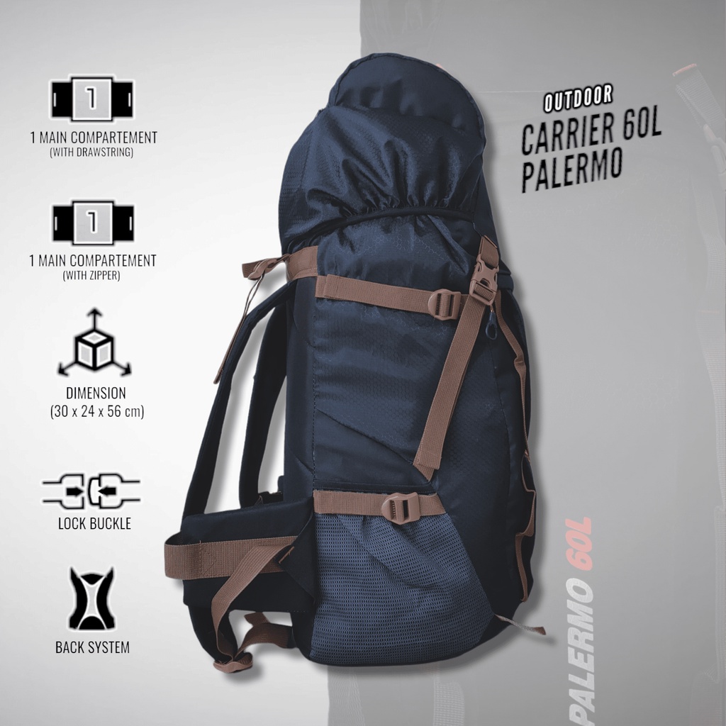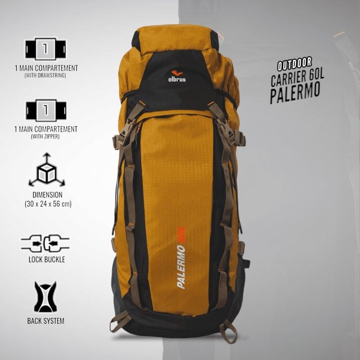Tas Ransel Gunung Camping Outdoor Backpack 60 Liter Tas Keril Elbrus Palermo