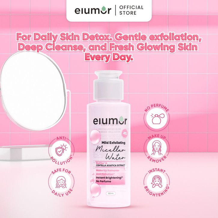 Elumor Mild Exfoliating Micellar Water 100ml Pembersih Wajah Makeup Remover Cleansing Water Glow