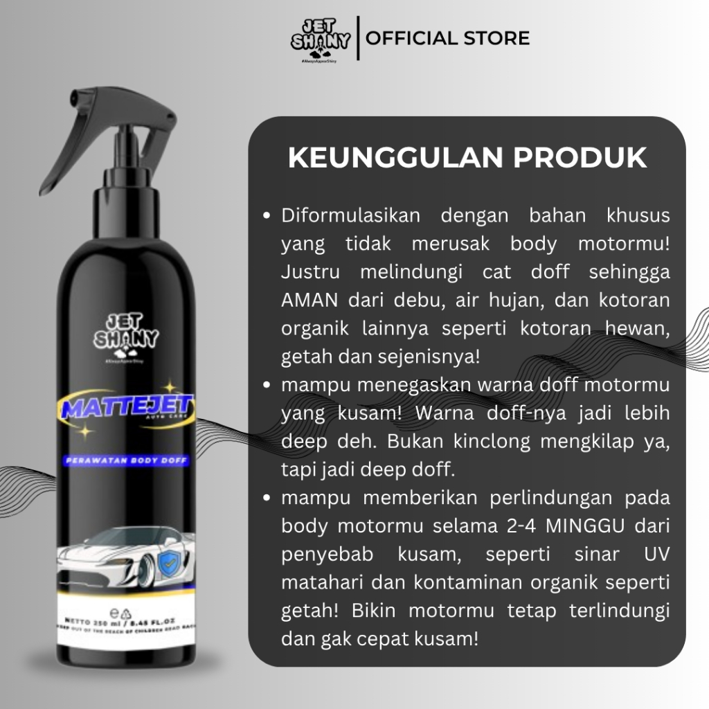 Jet Shiny MatteJet Motorcycle Care | Proteksi dan Perawatan Body Cat Doff/Matte dan Helm Doff Mobil Doff, Pelindung Cat