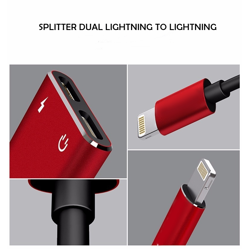 (SUPPORT OPEN MIC) ADAPTER DUAL LIGHTNING TO LIGHTNING IPHONE | CONVERTER 2IN1 AUDIO+CHARGER IPHONE | SPLITTER IPHONE MU