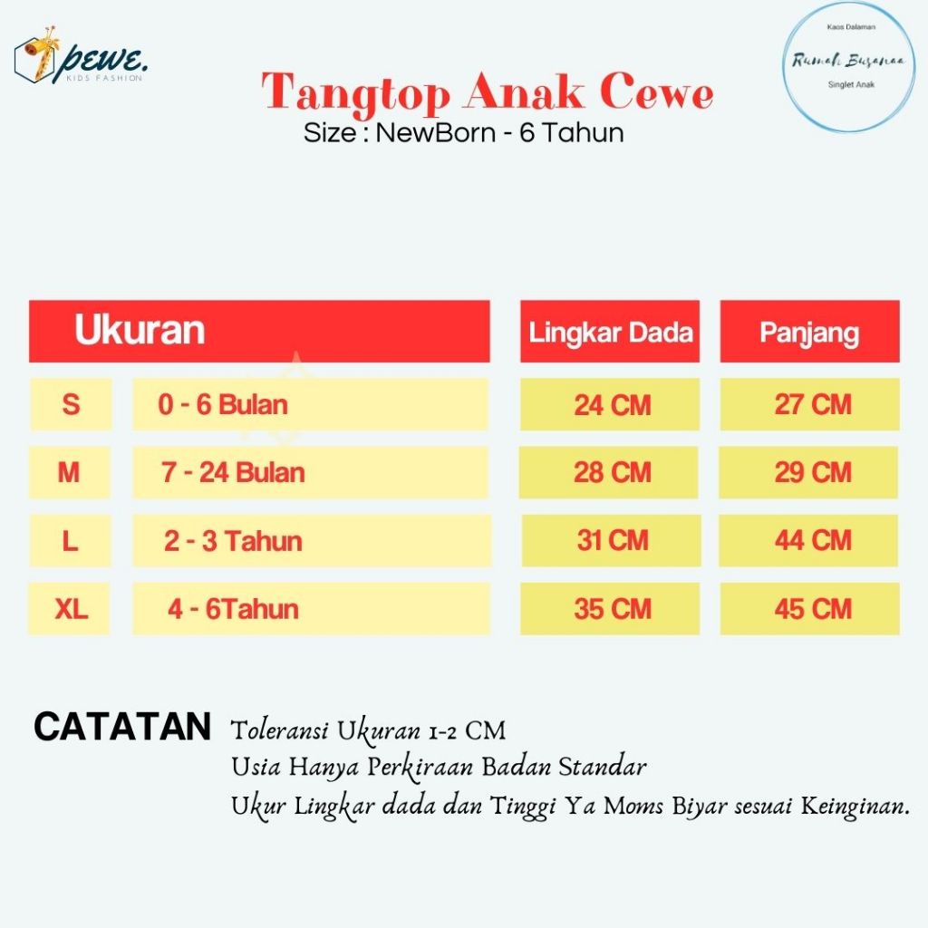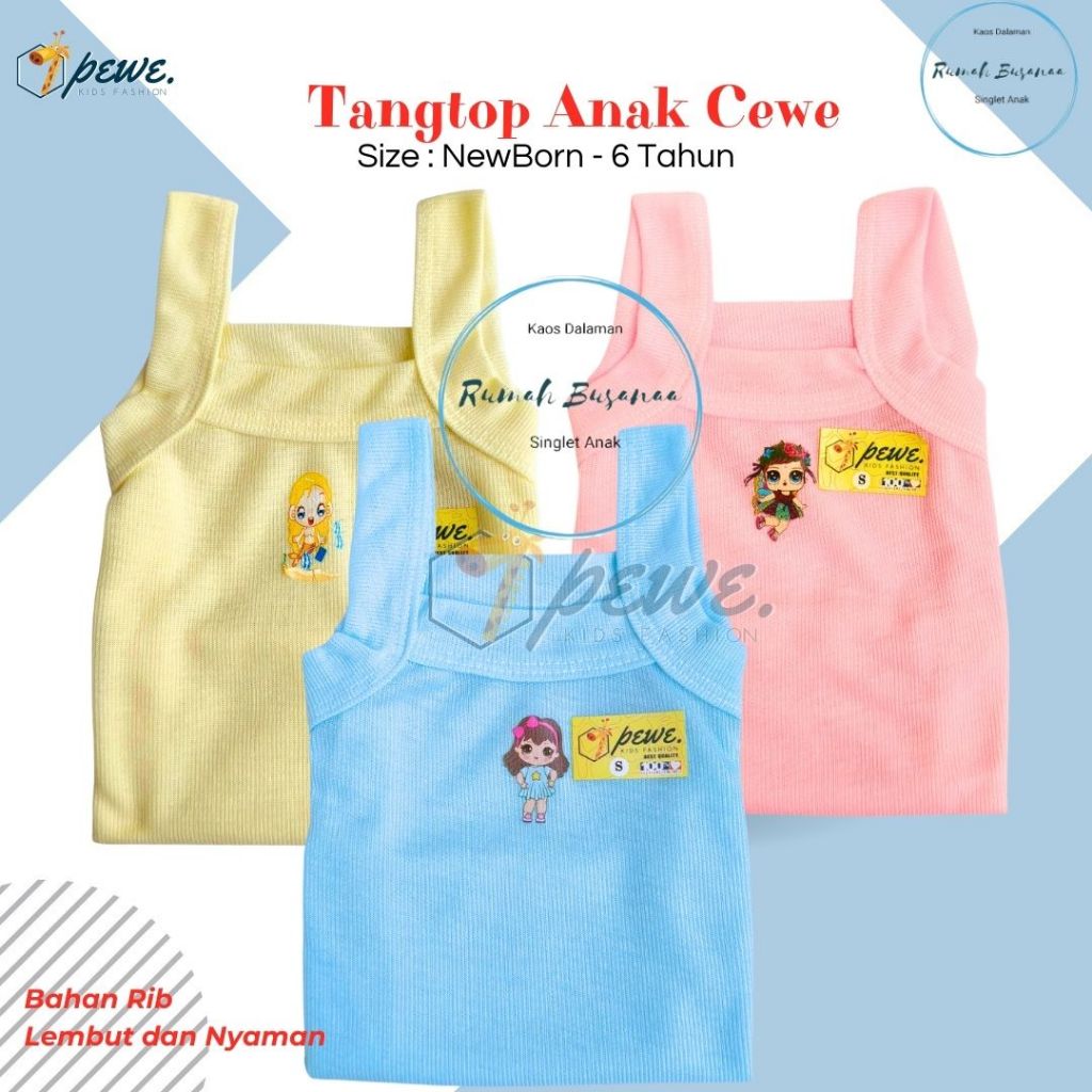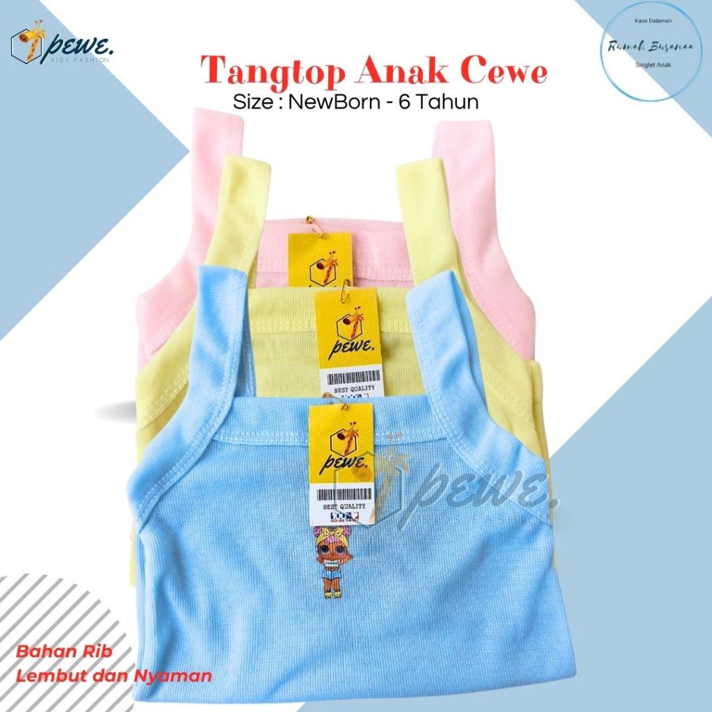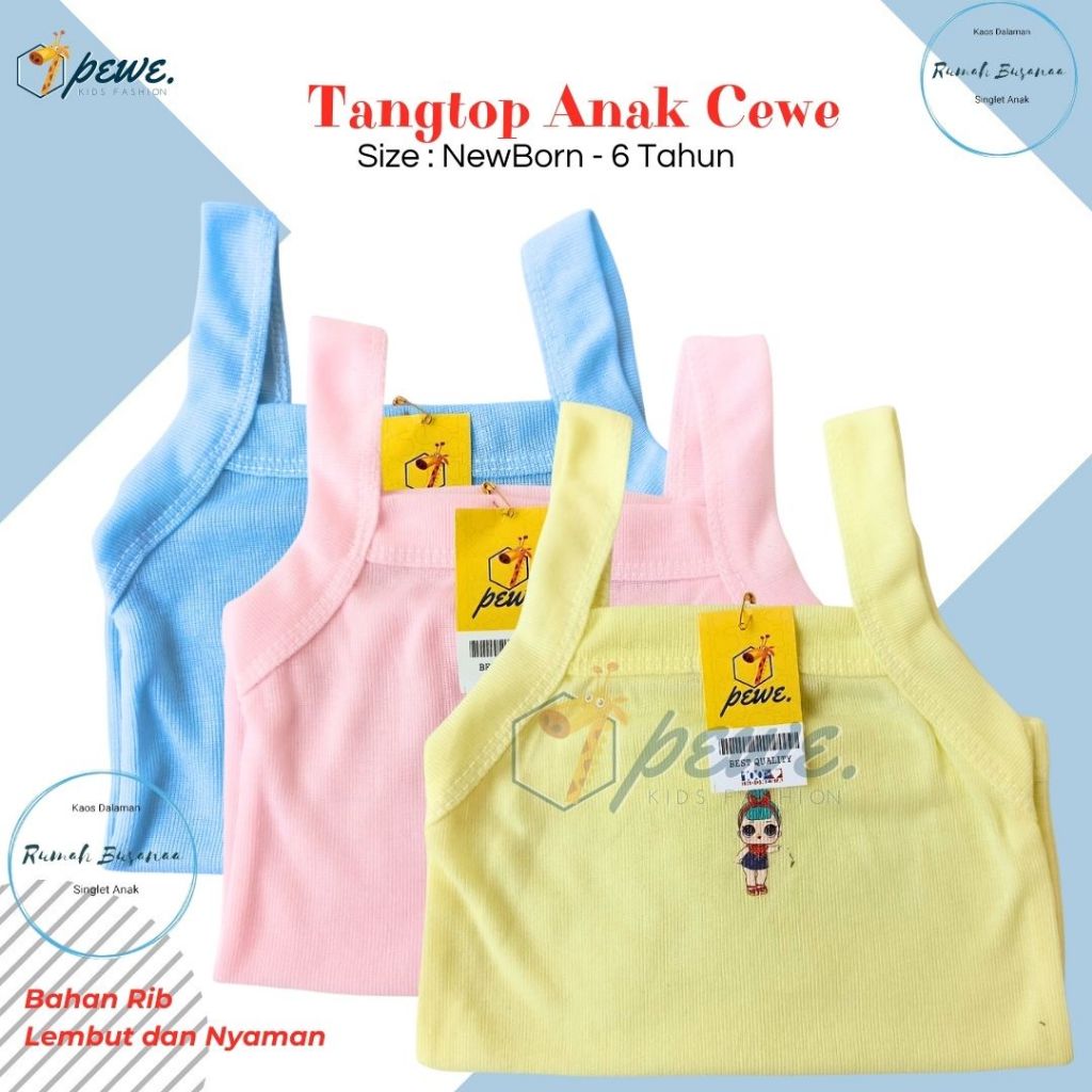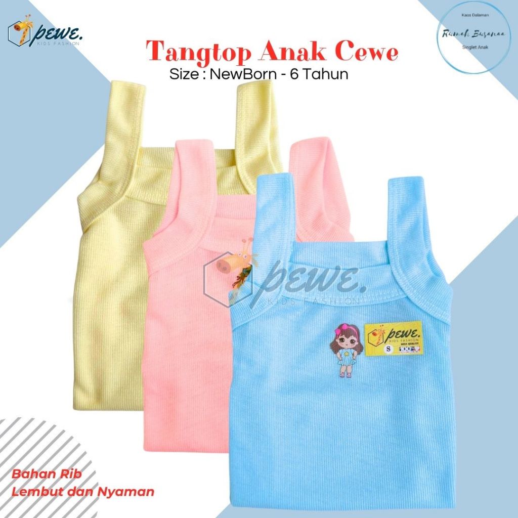 Kaos Dalam bayi cewek warna polos 0-10 Tahun isi 6 PCS