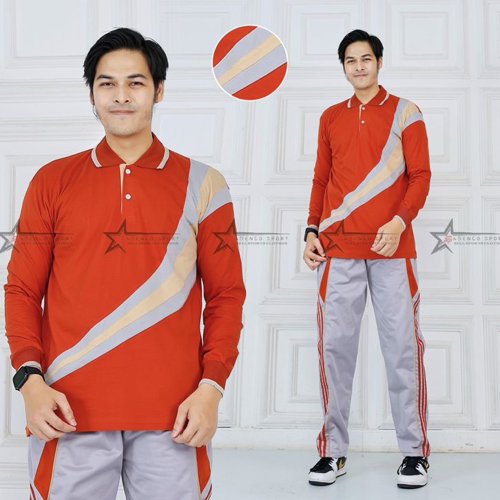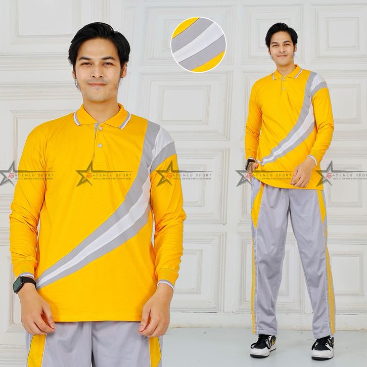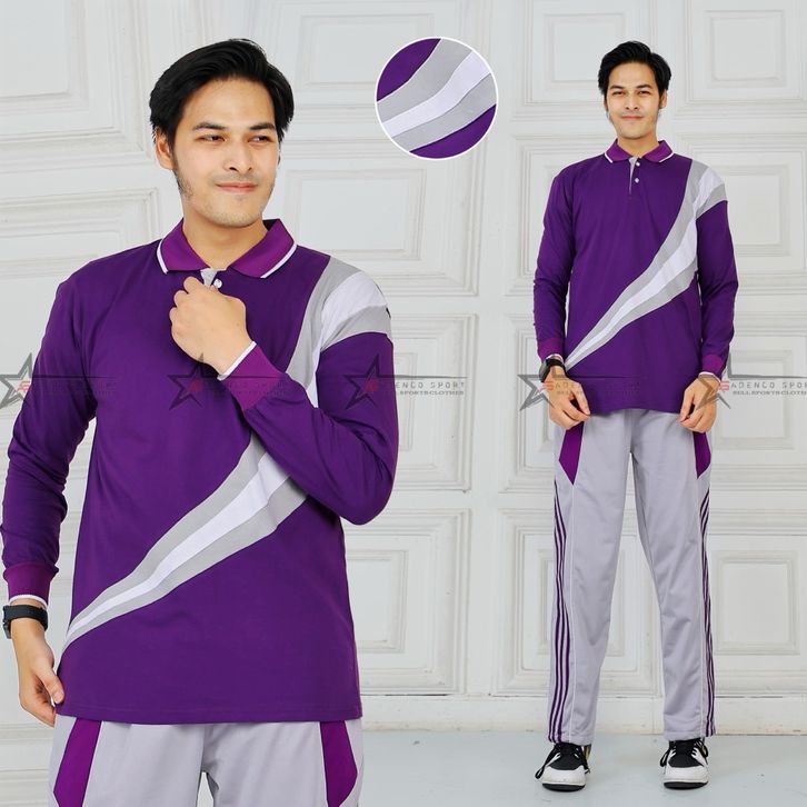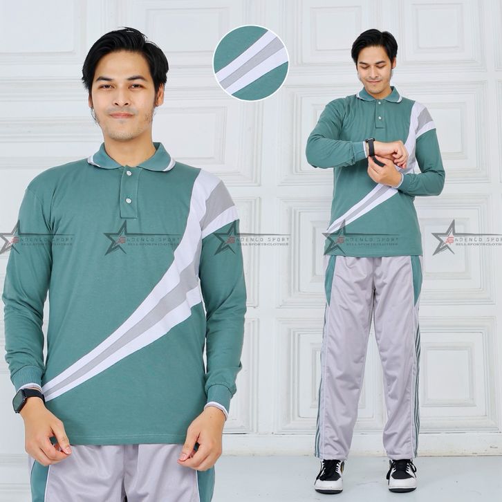 Setelan Baju Olahraga Senam Pria Lengan Panjang / Seragam Kaos Olahraga Senam / Set Baju Senam pria