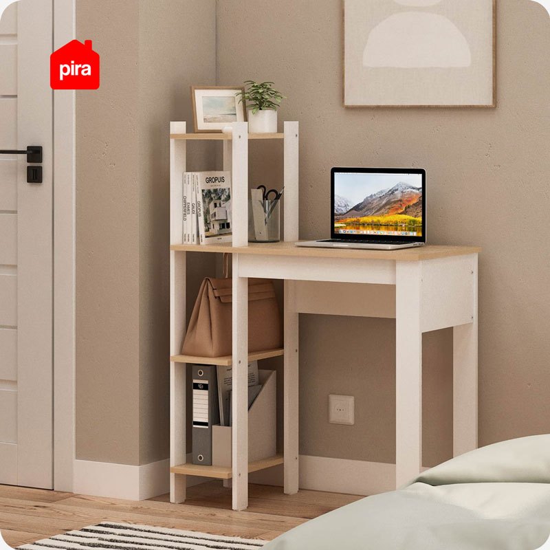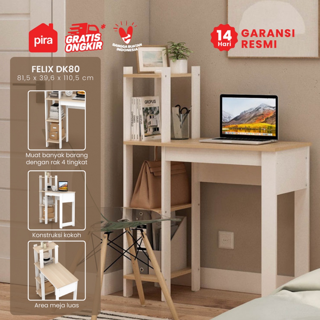 Meja Belajar dengan Rak Buku / Meja Kerja / Meja Tulis PIRA Gratis Ongkir