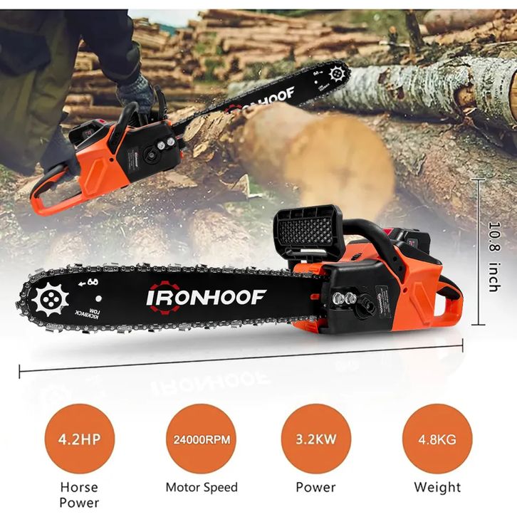 GERGAJI KAYU TANGAN IRONHOOF 588V 16 INCI MESIN PEMOTONG LISTRIK BATERAI CORDLESS CHAINSAW