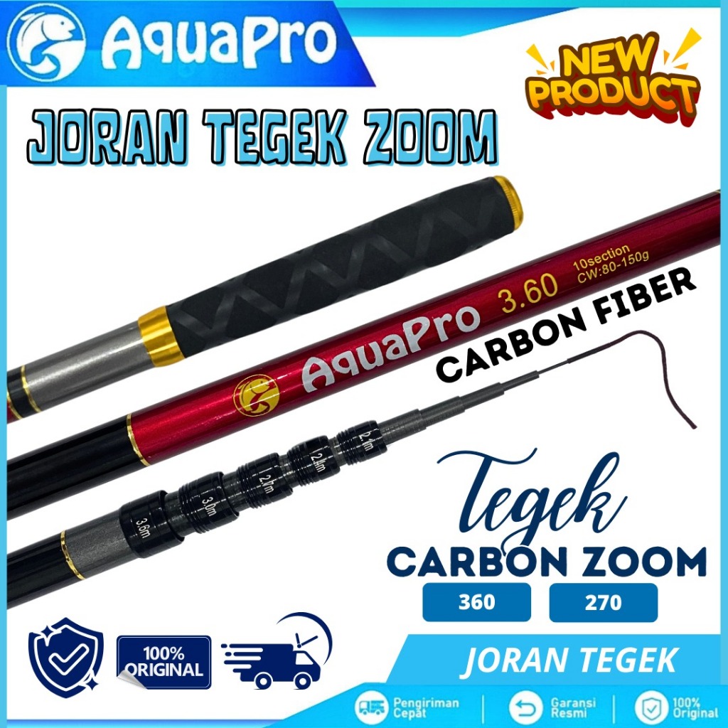 Joran Pancing Murah AquaPro Joran Tegek Carbon Zoom Telescopic Uk180-360 Joran Antena 8-10 Section Gloss Ceramic Coating