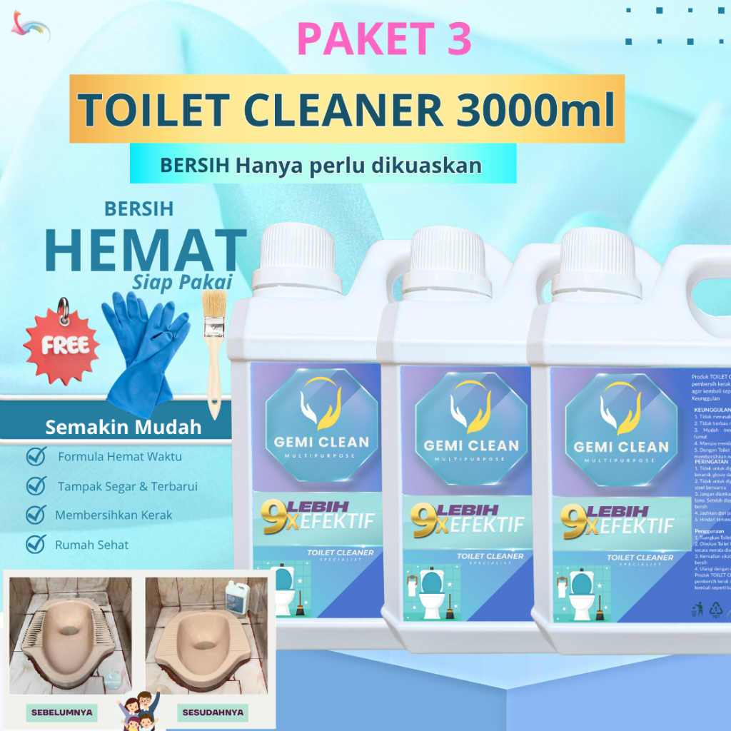 PAKET 3 GEMI CLEAN AMPUH BERSIHKAN LANTAI KAMAR MANDI CLOSET TOILET 1000ml