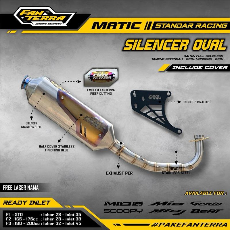 Knalpot Std Racing Silincer OVAL • MIO, STYLO, VARIO, BEAT, SCOOPY, PCX, N-MAX, AEROX, VESPA, ADV, MIO J, FINO