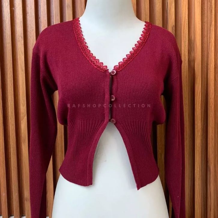 Rajut Wanita Rajut Brukat Kardigan Crop Cardigan Wanita Outer Wanita Renda Kekinian Kardigan Krop Wanita