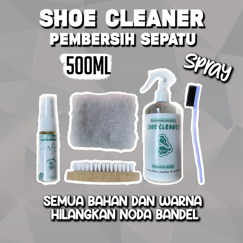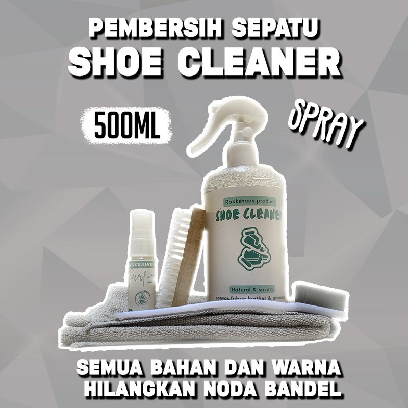 Set cuci sepatu lengkap dengan 500ml cleaner spray siap pakai.