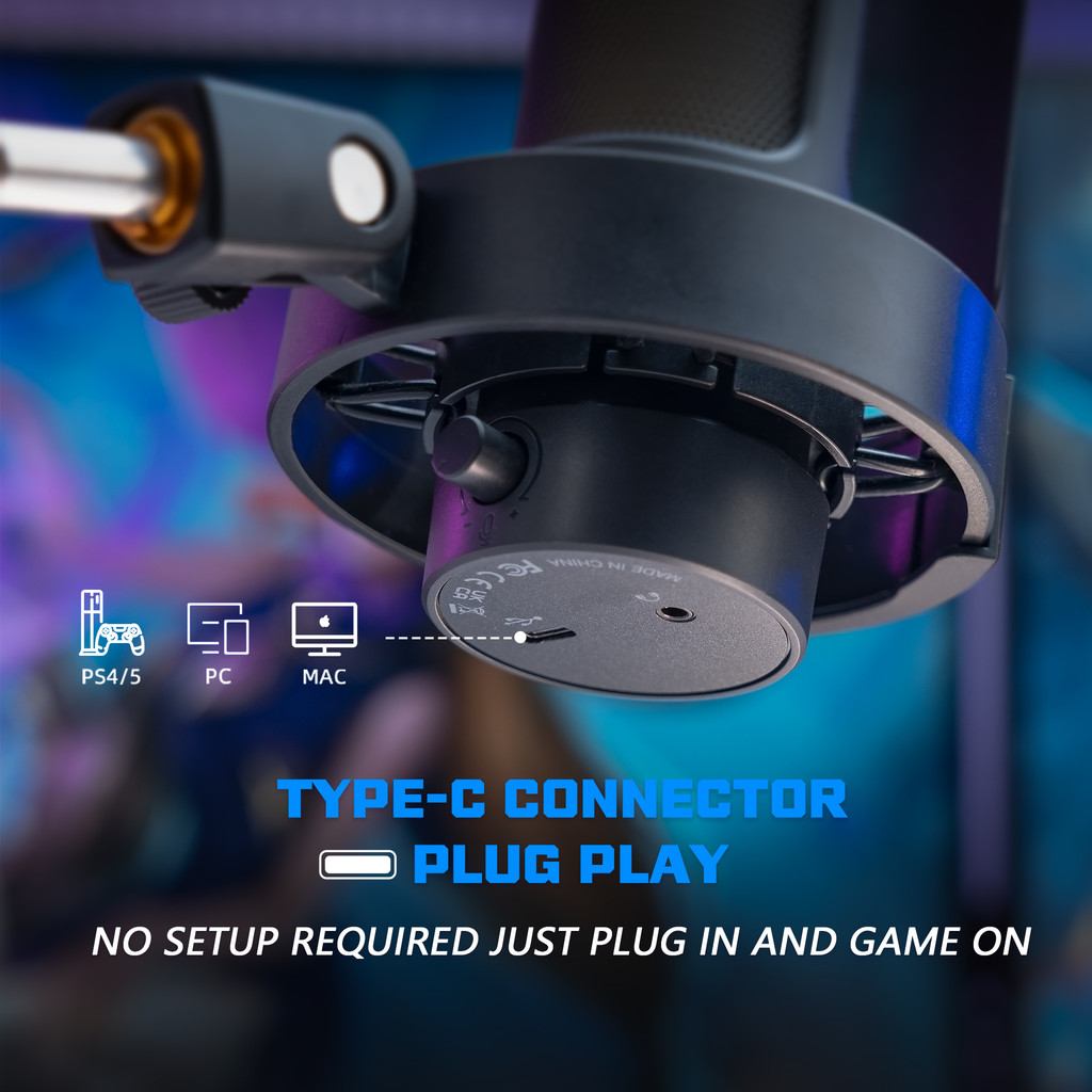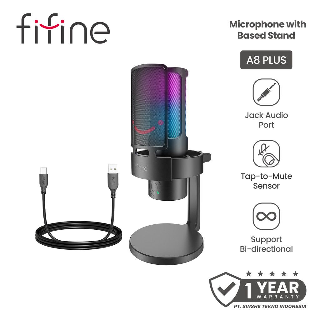 FIFINE USB Microphone A8 with Controllable RGB Live Monitoring Pop Filter Mic for Streaming Gaming