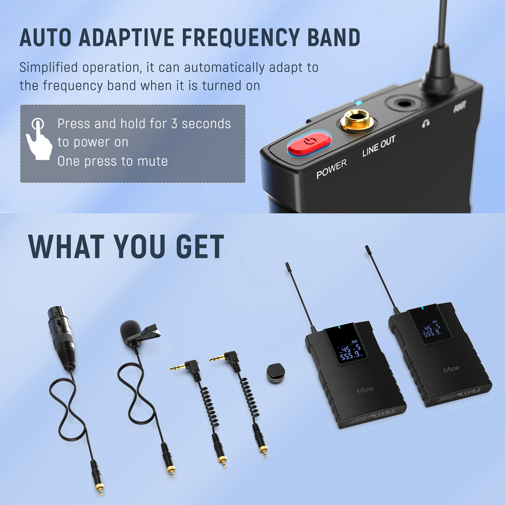 FIFINE C8 Wireless Lavalier Mic UHF – Clip On Kamera, Vlog, DSLR, Video Shooting