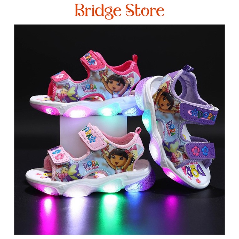 Bridgsetore - Sepatu SANDAL Anak Perempuan LED IMPORT Model Terbaru DORA THE EXPLORER / DORA 007