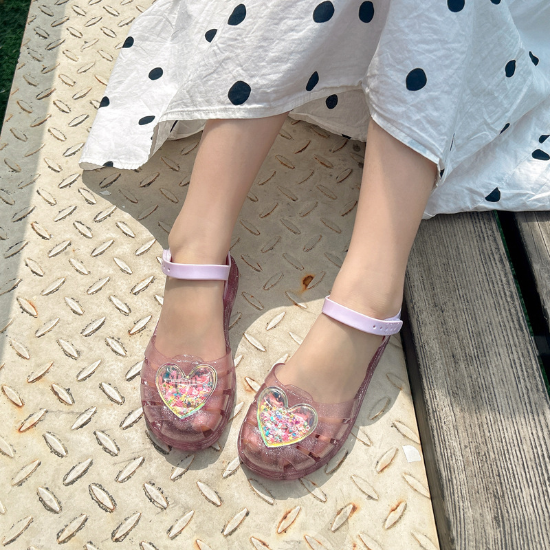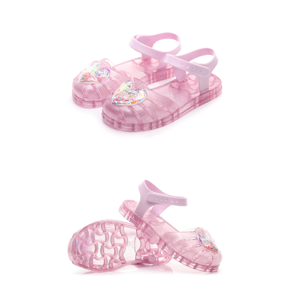 Sendal Sepatu Jelly Anak Perempuan Sasa Lucu Berglitter Anti Slip Ringan Dan Lentur Dengan Variasi Hati Springkle Ukura