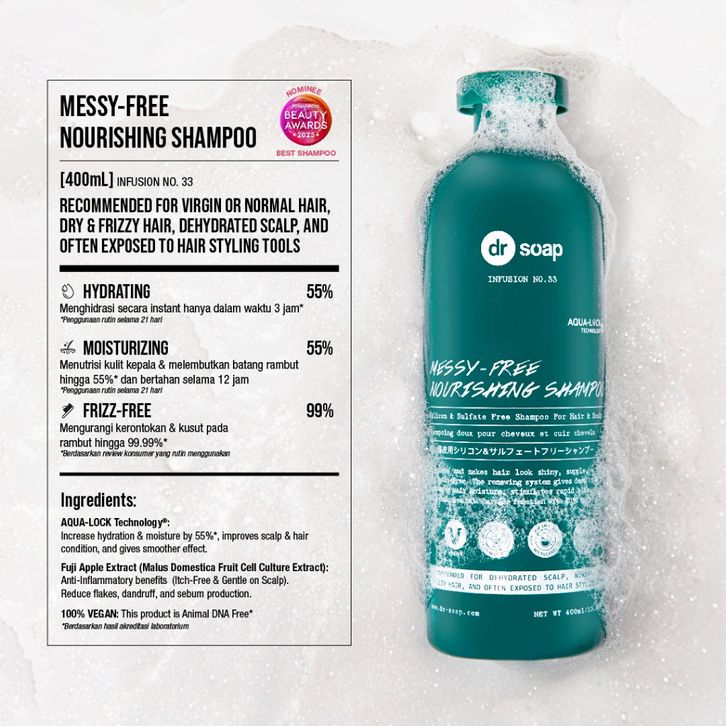 shampoo anti lepek dr soap Messy-free Nourishing Shampoo Infusion 400ml | Sampo Rambut Virgin Anti Rontok, Anti Ketombe