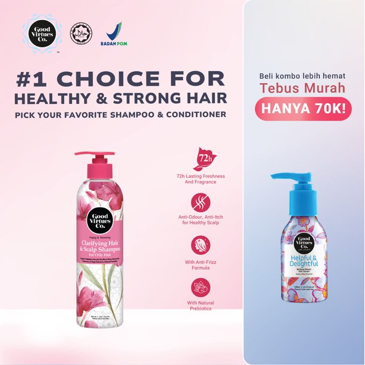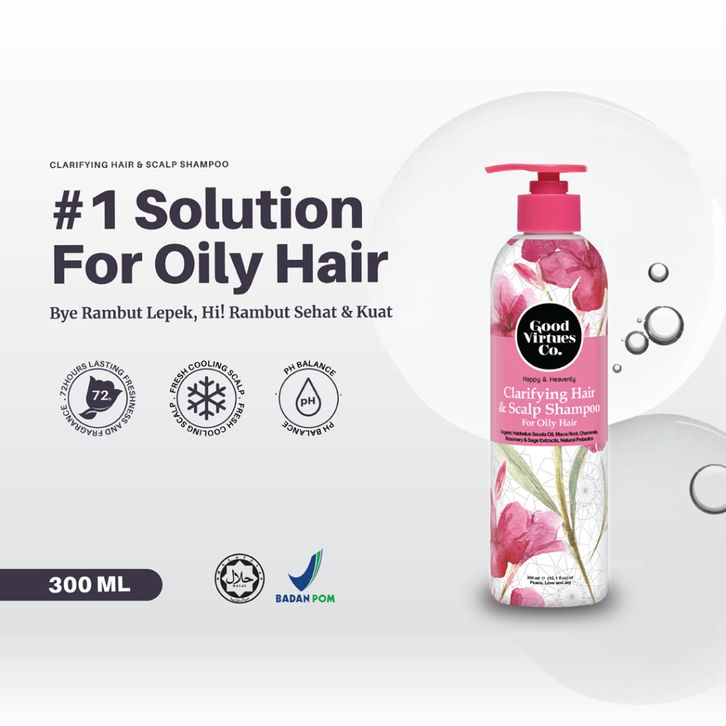 shampoo anti lepek Good Virtues Co. Clarifying & Hair Scalp Shampoo 300ml for oily hair| Sampo Anti Lepek dan Berminyak