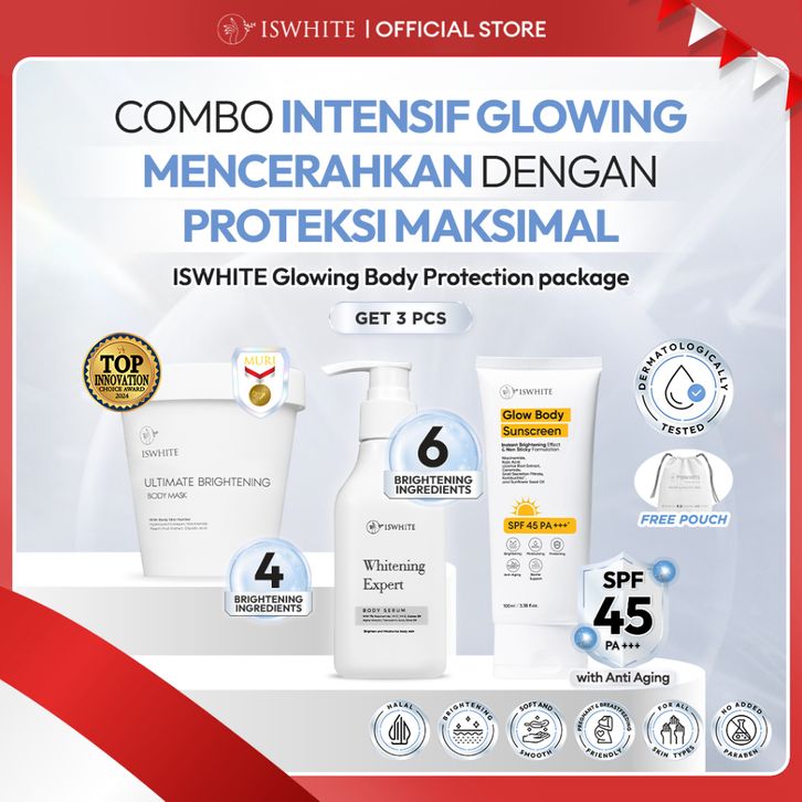 body serum ISWHITE Glowing Body Protection Package | Paket Pencerah + Perlindungan Kulit dari UVA UVB | Ampuh Mencerahk