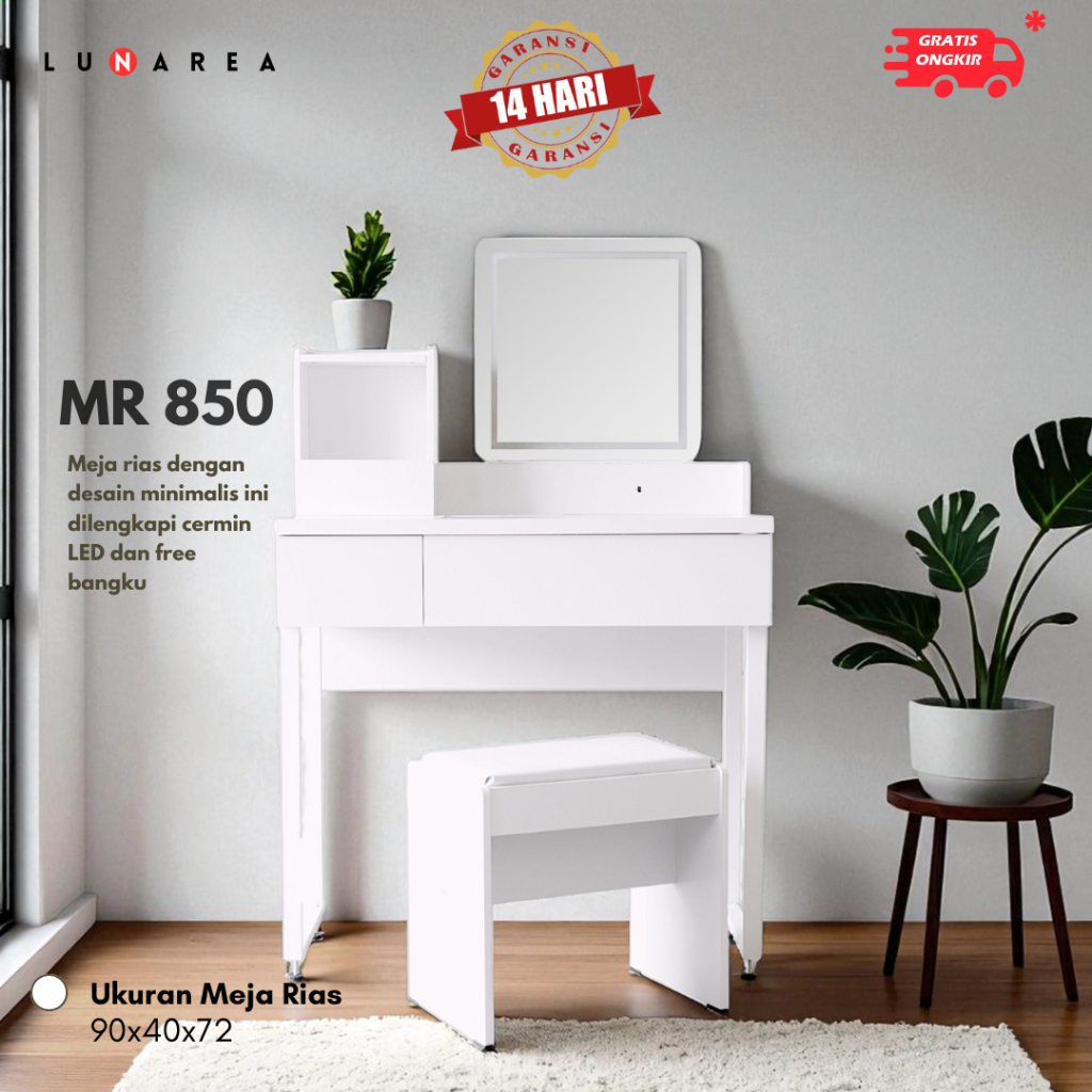 Meja Rias Minimalis Lunarea Furniture - MR 850 -Aesthetic /LED / Putih
