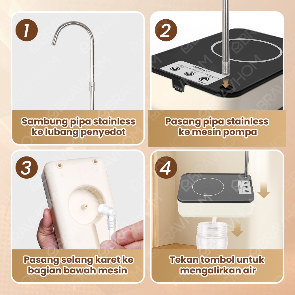 DISCON BRAVHOM Pompa Air Galon Elektrik Otomatis 2in1 Ketel Dan Meja Rotasi 360 Derajat BL-WD13