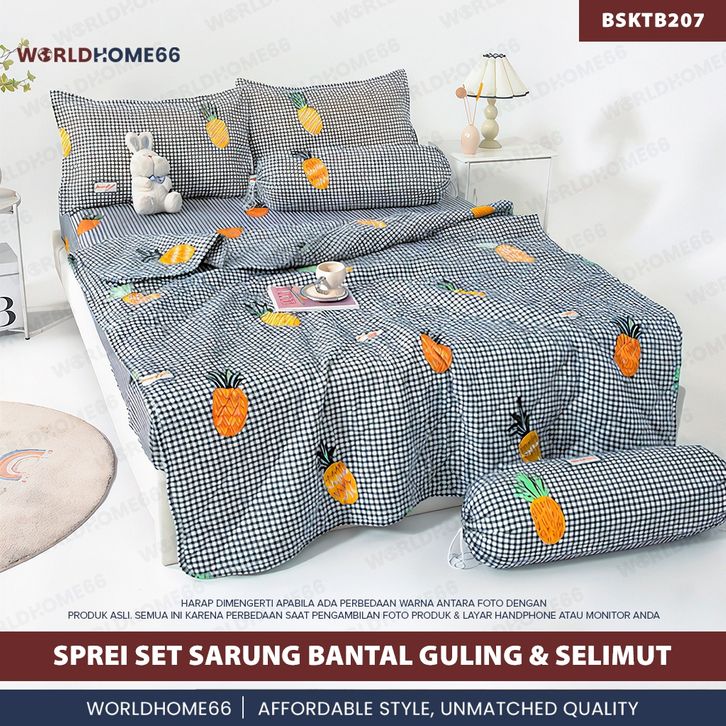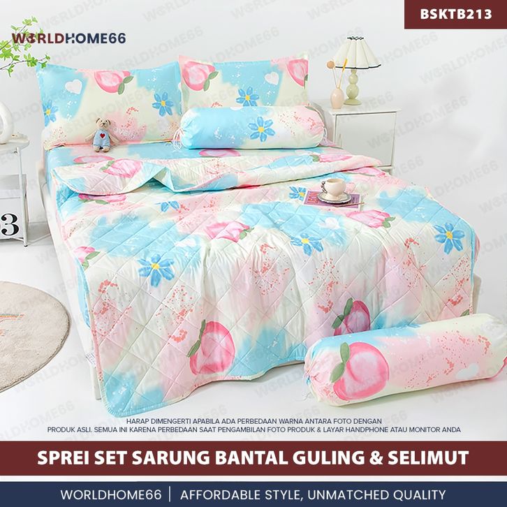 Sprei Set Sarung Bantal guling & Selimut Set Bedcover Seprei Sarguntal Gaya Estetik Modern Worldhome