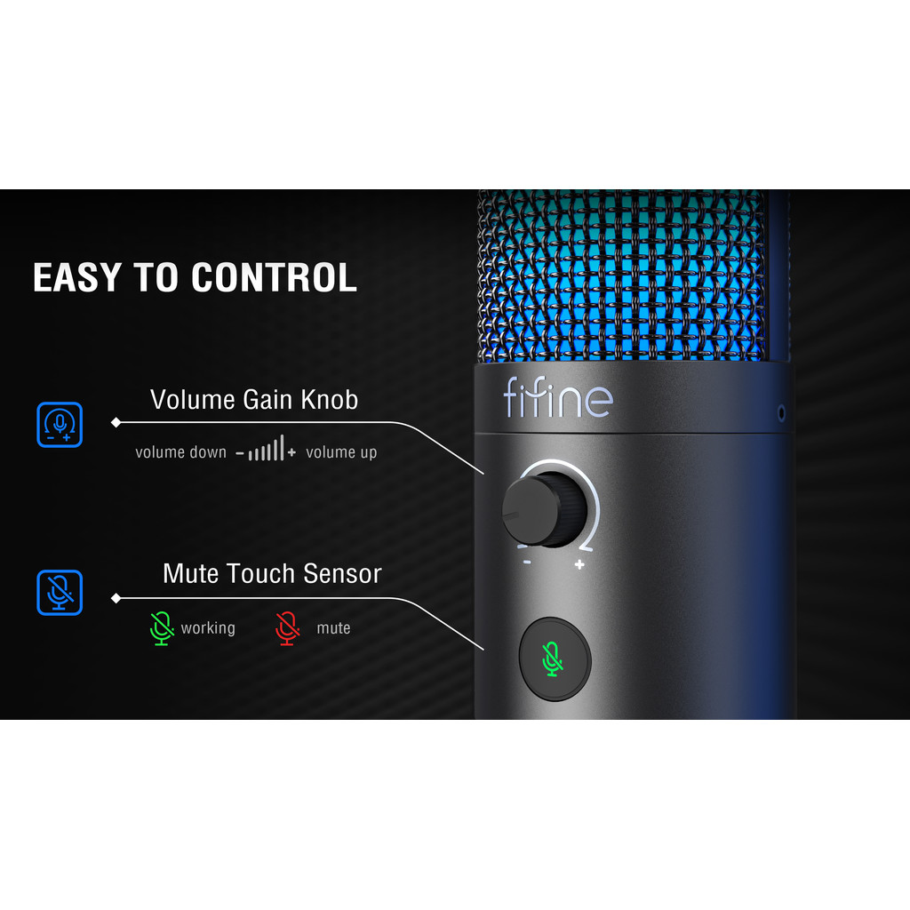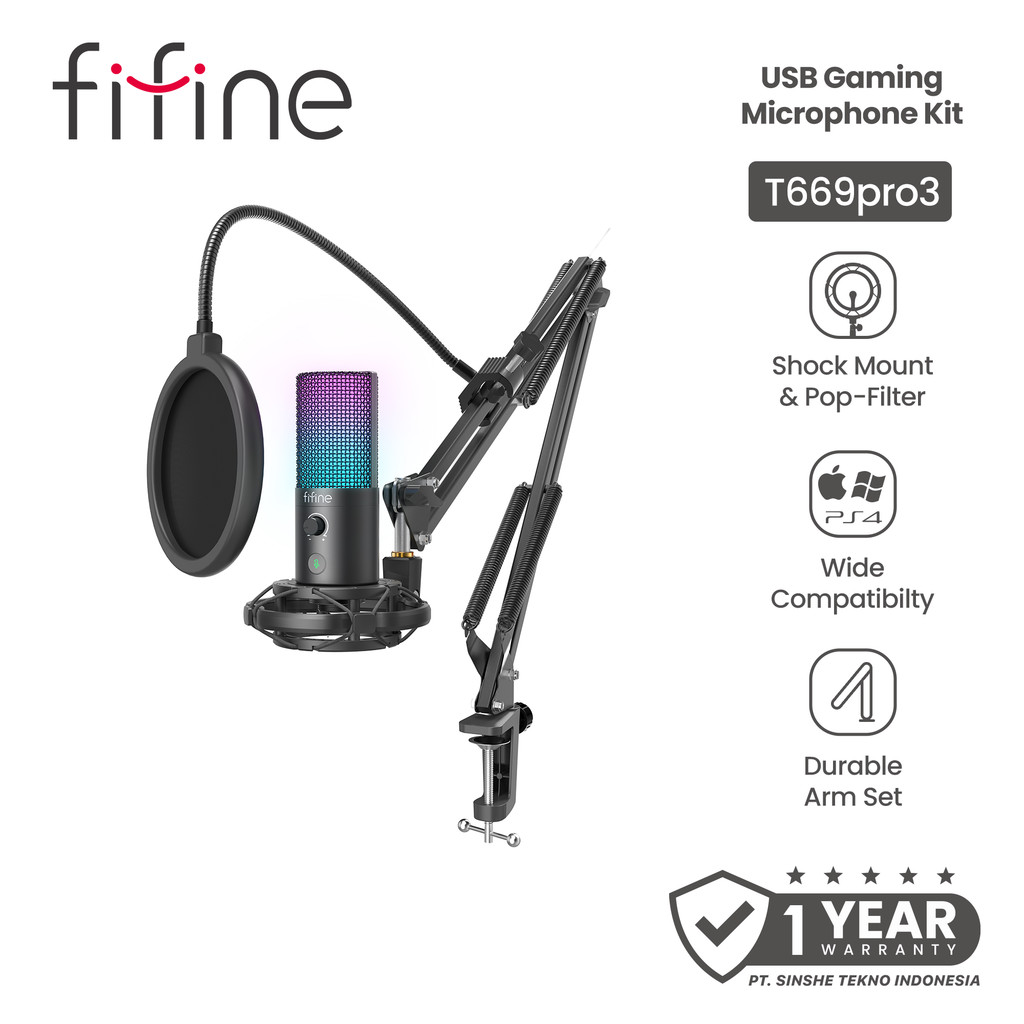 FIFINE T669 Pro3 Mic USB-C RGB Condenser Microphone Gaming, Streaming, Podcast