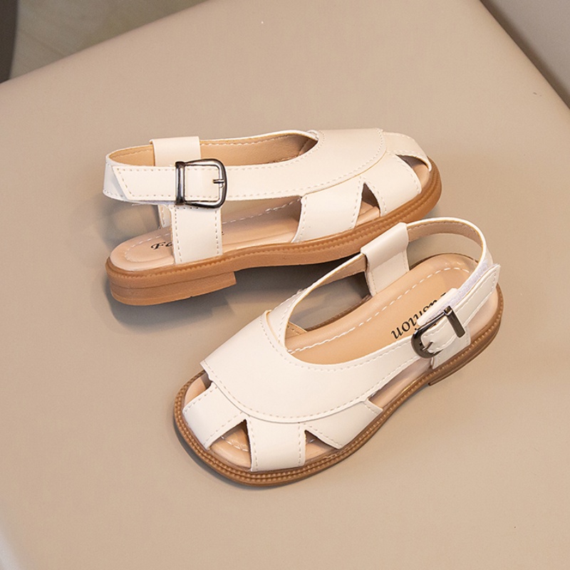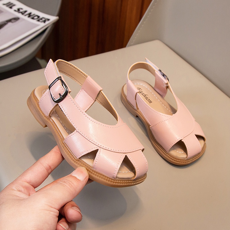Gaya Korea Trendi Sandal Kulit Lembut untuk Anak Perempuan Fashion All-Match Sol Lembut Anti Licin Sepatu Anak 3-16 Tahu