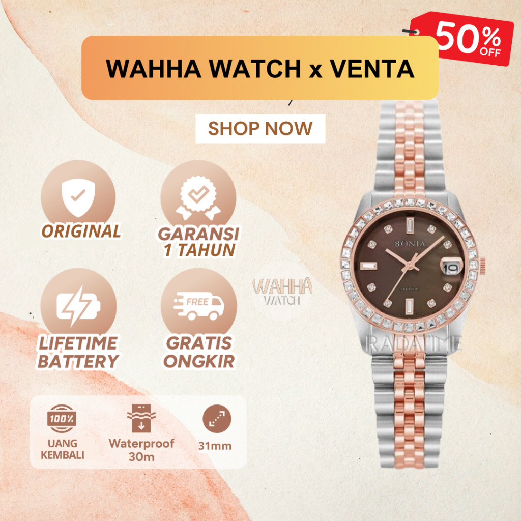 [ORIGINAL]-[] ✅ Jam Tangan Bonia Stainless Wanita BNB10087 Brown [BERGARANSI]