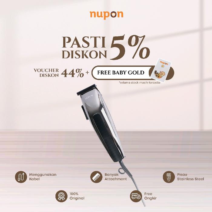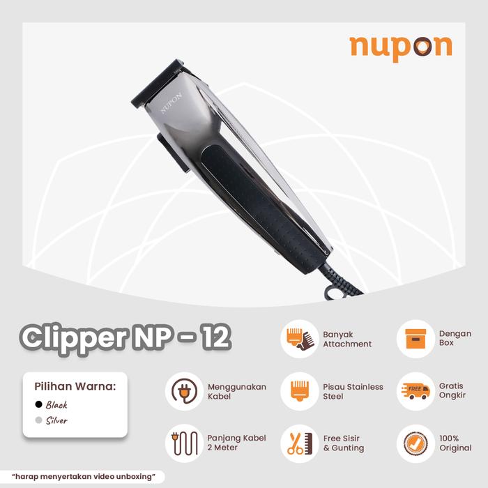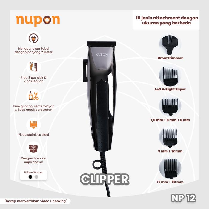 NUPON - Paket Alat Cukur Rambut Hair Clipper NP-12 + Attachment & Celemek - Black
